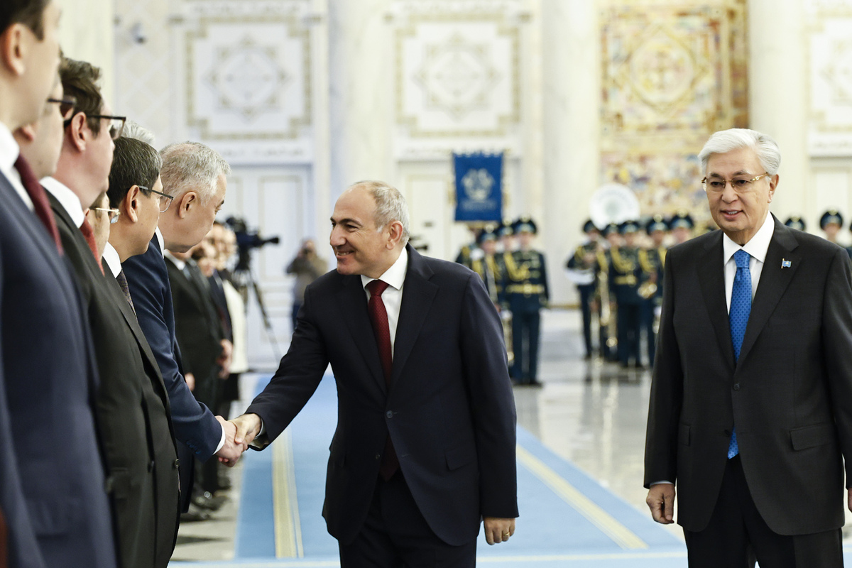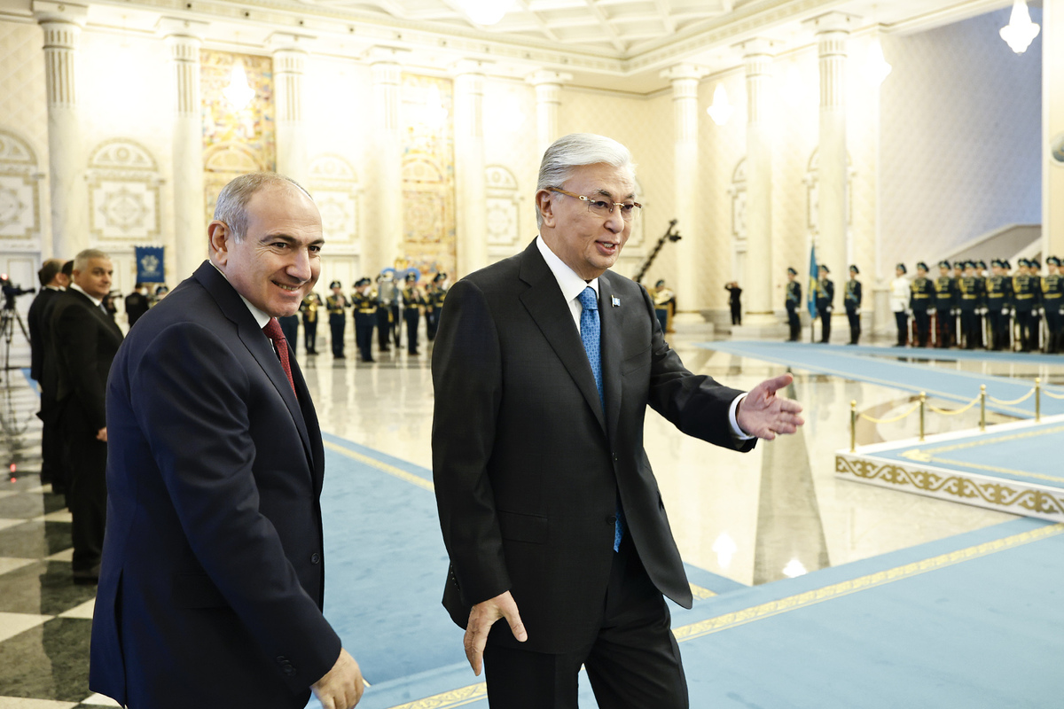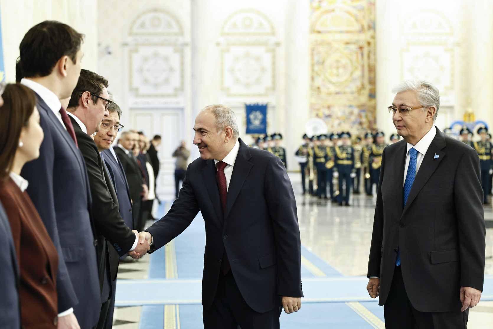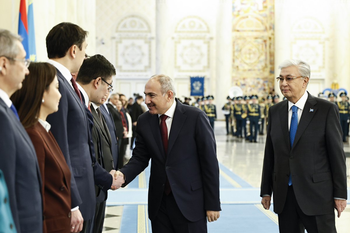 Le Premier ministre de la République d'Arménie et le président du Kazakhstan ont ensuite eu un entretien privé. Kassym-Jomart Tokayev a déclaré dans son discours de bienvenue : « Monsieur le Premier ministre de la République d'Arménie, bienvenue au Kazakhstan. Votre visite est très importante pour nos deux pays, pour notre partenariat stratégique en développement dynamique. Nos relations connaissent donc un nouvel élan, et nous sommes convaincus que cela donnera également un nouvel élan au développement de nos relations futures. Il s'agit de votre première visite officielle au Kazakhstan, c'est pourquoi nous y accordons une grande importance. J'espère qu'elle se déroulera bien et je suis sûr que cette visite aura une importance significative pour le peuple kazakh, pour notre histoire, pour nos traditions et pour notre culture. Au cours de votre visite, plusieurs accords et documents importants seront signés. Je vous souhaite à nouveau la bienvenue au Kazakhstan. »