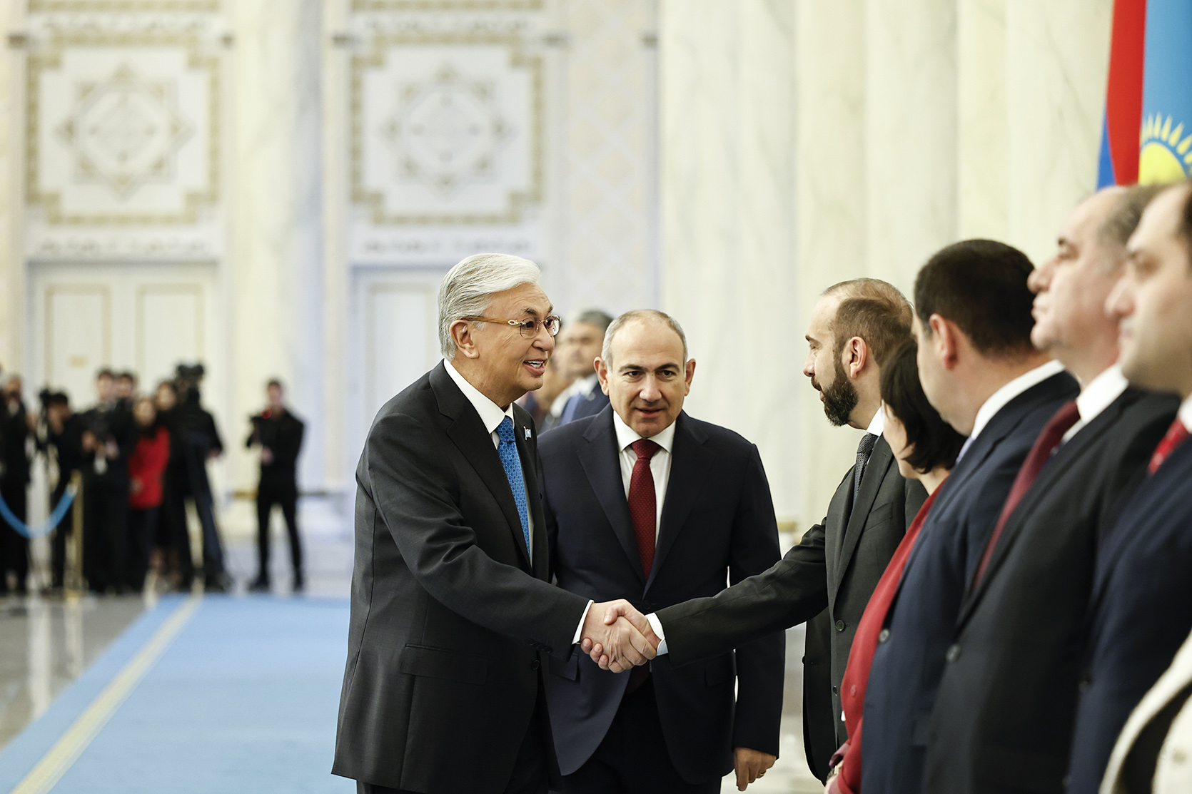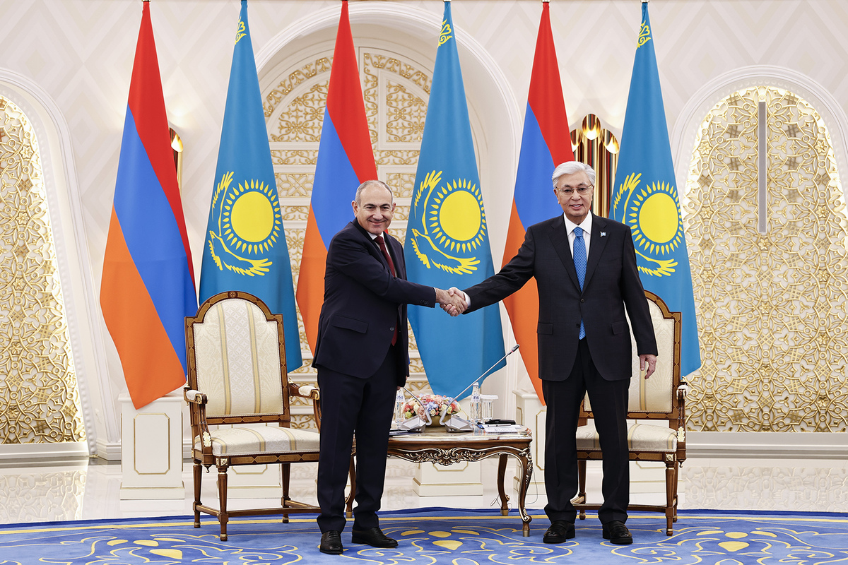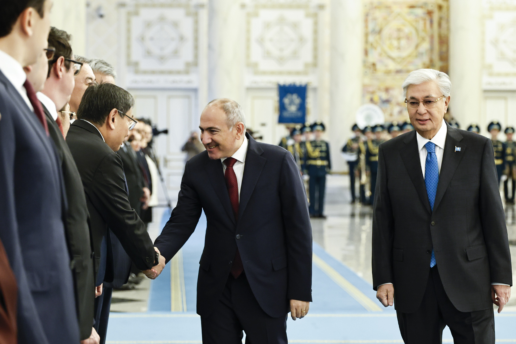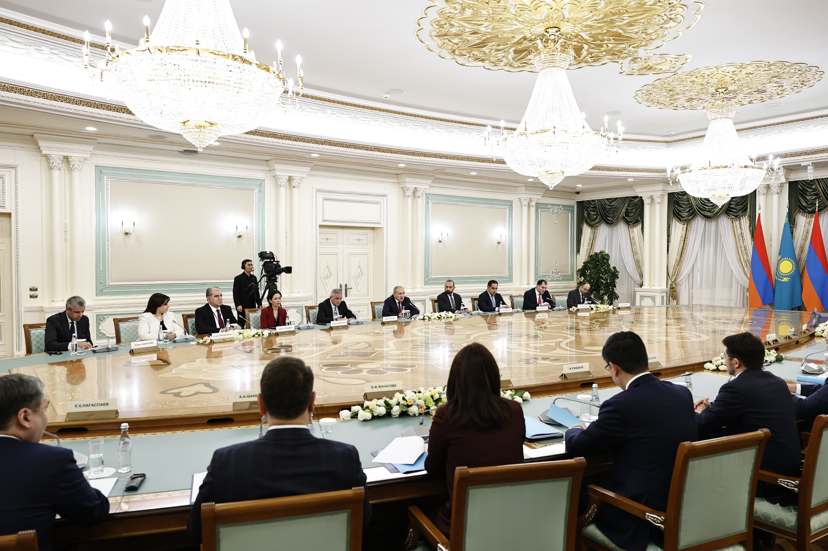Le Premier ministre de la République d'Arménie et le président du Kazakhstan ont ensuite eu un entretien privé. Kassym-Jomart Tokayev a déclaré dans son discours de bienvenue : « Monsieur le Premier ministre de la République d'Arménie, bienvenue au Kazakhstan. Votre visite est très importante pour nos deux pays, pour notre partenariat stratégique en développement dynamique. Nos relations connaissent donc un nouvel élan, et nous sommes convaincus que cela donnera également un nouvel élan au développement de nos relations futures. Il s'agit de votre première visite officielle au Kazakhstan, c'est pourquoi nous y accordons une grande importance. J'espère qu'elle se déroulera bien et je suis sûr que cette visite aura une importance significative pour le peuple kazakh, pour notre histoire, pour nos traditions et pour notre culture. Au cours de votre visite, plusieurs accords et documents importants seront signés. Je vous souhaite à nouveau la bienvenue au Kazakhstan. »