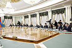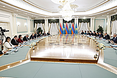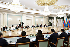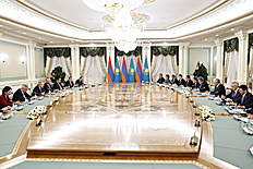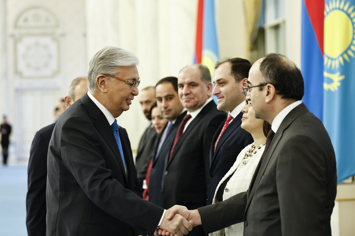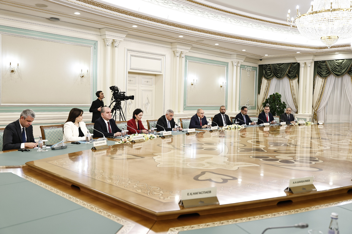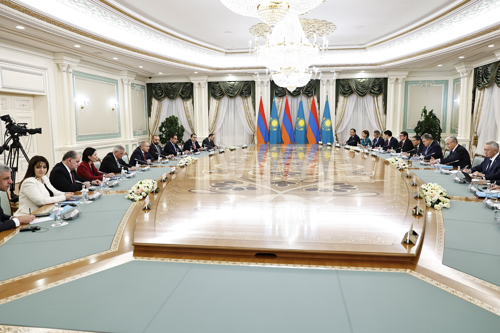 Une réunion élargie entre Nikol Pashinyan et Kassym-Jomart Tokayev a ensuite eu lieu. Kassym-Jomart Tokayev a souligné que l'Arménie est un partenaire important pour le Kazakhstan dans le domaine des relations commerciales et économiques, et que le peuple kazakh respecte profondément le peuple arménien, son histoire, sa culture et ses traditions. Selon lui, l'Arménie est aujourd'hui une destination touristique très prisée du peuple kazakh. Selon le président du Kazakhstan, les deux pays entretiennent des relations ouvertes fondées sur la confiance mutuelle et coopèrent étroitement tant au niveau régional qu'international. « Notre coopération dans les domaines commercial, économique, culturel et éducatif ne cesse de se développer. Je tiens à souligner que nos relations interétatiques sont particulières et que nous avons de grandes opportunités pour développer notre coopération dans tous les domaines. Aujourd'hui, nous allons signer des documents historiques afin de renforcer nos relations entre les deux pays et de les transformer en relations stratégiques », a déclaré Kassym-Jomart Tokayev.