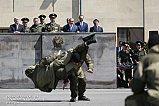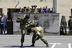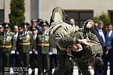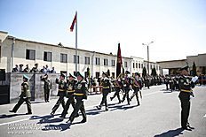 Ensuite, les gardes-frontières du Service de la sécurité nationale ont organisé un défilé festif. Le Premier ministre Pashinyan, accompagné du directeur du Service de la sécurité nationale, Arthur Vanetsian, a visité le bâtiment administratif des troupes frontalières et pris connaissance de l'équipement technique de l’organisme et les activités du centre de formation.