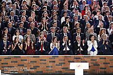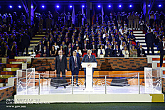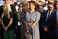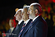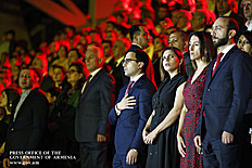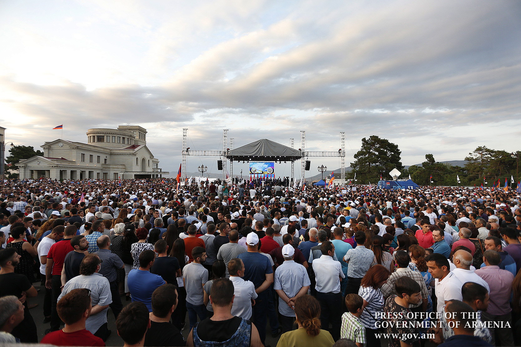 Այժմ առաջարկում եմ մեկ րոպե լռությամբ հարգել արցախյան հերոսամարտի մեր բոլոր նահատակների հիշատակը, որովհետև այդ նրանք իրենց անձնազոհությամբ և նվիրումով հնարավոր դարձրեցին այս օրը, երբ Հայաստանի վարչապետը Ստեփանակերտի Վերածննդի հրապարակում կարող է հանդես գալ Հայաստանի, Արցախի և Սփյուռքի ապագային վերաբերող ելույթով։ Մեկ րոպե լռությամբ հարգենք մեր նահատակների հիշատակը...
