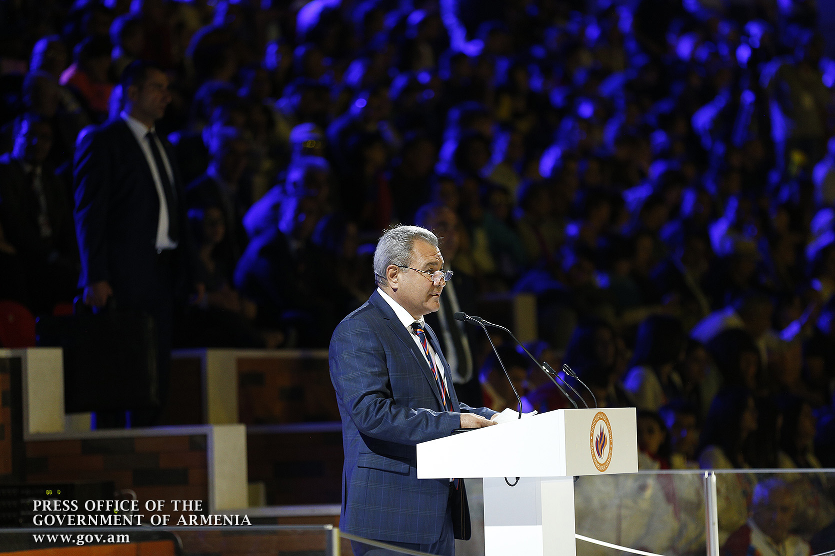 այսօր մեր հայրենիքում տոն է, որովհետև մեր ժողովրդի հազարավոր զավակներ՝ Եվրոպայից, Ասիայից, Ավստրալիայից, Հյուսիսային և Հարավային Ամերիկաներից մեկտեղվել են հայության արժանապատվության միջնաբերդ Արցախում, և մենք վայելում ենք միասին լինելու, իրար հետ լինելու երջանկությունը։ Իսկ ինչո՞ւ է մեզ այսպիսի երջանկություն պարգևում միասին լինելը, որովհետև մեր երակներում հոսում է նույն արյունը, մեր երակներում հոսում է Հայկ Նահապետի արյունը, մեր երակներում հոսում է Արտաշես արքայի արյունը, մեր երակներում հոսում է Մեսրոպ Մաշտոցի և Գրիգոր Նարեկացու արյունը։