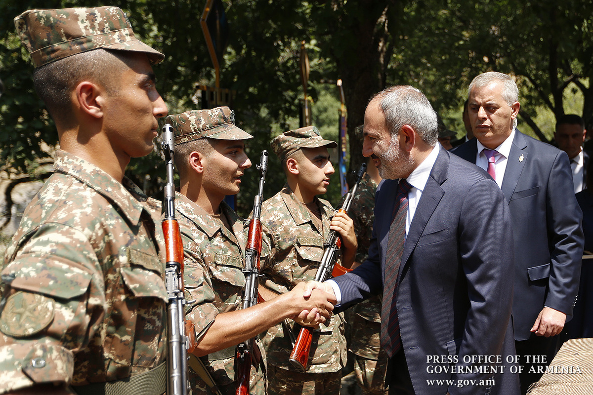 «Հայաստանի Հանրապետության Զինված ուժերի զորակոչիկներ, շնորհավորում եմ ձեզ զինվորական երդումն ընդունելու կապակցությամբ», - ողջույնի խոսքում նշել է վարչապետը, ապա անհատապես շնորհավորել զինծառայողներին, բարեմաղթանքներ հղել նրանց ծնողներին։