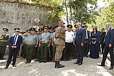 Նիկոլ Փաշինյանի այցը մեկնարկել է Մխիթար Սպարապետի գերեզման այցելությամբ. վարչապետը ծաղկեպսակ է դրել Սպարապետի շիրիմին և հարգանքի տուրք մատուցել նրա հիշատակին։ Այնուհետև տեղի է ունեցել առանձին զրահատանկային գումարտակի 15 զինծառայողի զինվորական երդման արարողություն, ընթերցվել է Սպարապետի խոսքը, հնչել է Հայաստանի Հանրապետության պետական օրհներգը։