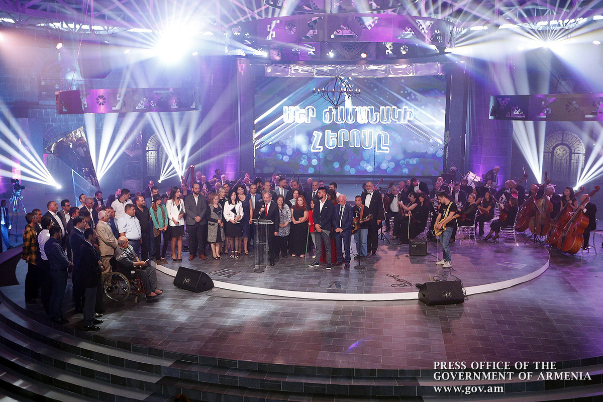 Այնուհետև բեմ են բարձրացել «Մեր ժամանակի հերոսը» շարքի բոլոր մասնակիցները: Դիմելով նրանց` Նիկոլ Փաշինյանը նշել է.