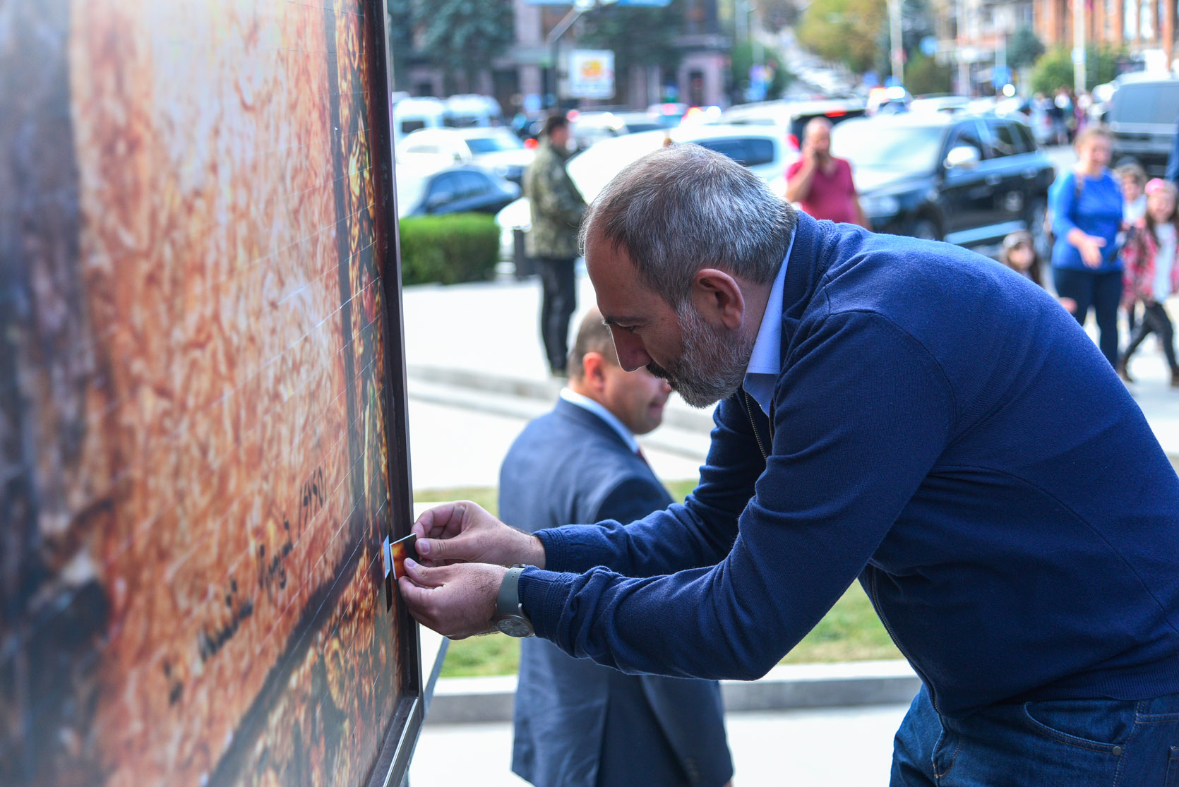 Վարչապետ Նիկոլ Փաշինյանը Գյումրի այցի ընթացքում տեղադրել է գյումրեցի նկարիչ Սուսաննա Մկրտչյանի «Պապի և տատի խոստացված մատաղ» նկարով պատրաստված փազլի վերջին կտորը:
