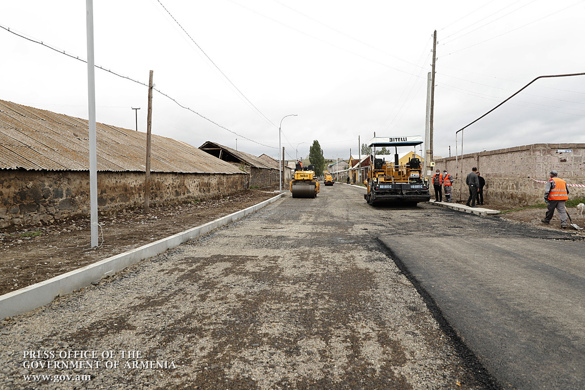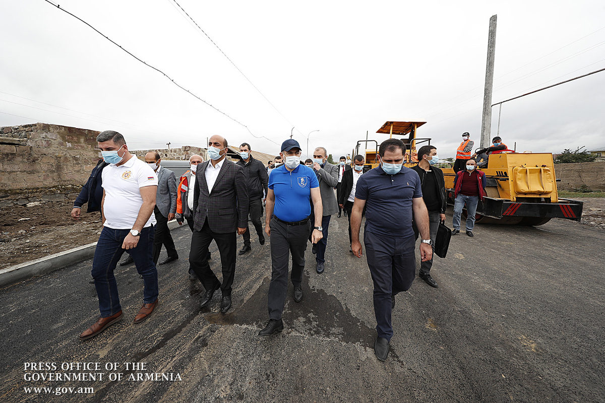 Վարչապետը նախ ծանոթացել է Արեգունի-Ծափաթաղ 12,5 կմ երկարությամբ ճանապարհահատվածի նորոգման աշխատանքների արդյունքներին: Այս ճանապարհը նախկինում երբևէ ասֆալտապատված չի եղել, և պատմության մեջ առաջին անգամ հիմնանորոգվել է 2019 թվականին։ Շինարարական աշխատանքների իրականացման համար պետբյուջեից հատկացվել է 1 մլրդ 457 մլն դրամ: Կատարվել է հիմքի և երկշերտ ասֆալտբետոնյա ծածկի կառուցում՝ մոտ 11 կմ երկարությամբ, մնացած 1,5 կմ վրա տեղադրվել է ասֆալտբետոնյա ծածկ: