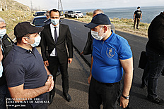 Հաջորդիվ վարչապետն այցելել է Սևանա լճի արևելյան ափի 20 կիլոմետրանոց ճանապարհահատվածի շինարարական տեղամաս, որտեղ ավարտին են հասցվում նորոգման աշխատանքները։ Հիմնանորոգվում է Մ-14, Մ-4-Շորժա-Վարդենիս 19+450 կմ-ից մինչև 39+400 կմ ճանապարհահատվածը: Ծրագրի նախահաշվային արժեքը կազմում է 2 մլրդ 629 մլն դրամ: Իրականացվում է հիմքի և երկշերտ ասֆալտբետոնյա ծածկի, 5 կամրջի և 7 կամրջային անցումների կառուցում, 15225 մ երկարությամբ մետաղական արգելապատնեշի տեղադրում, կահավորում, գծանշում: