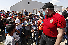 Վարչապետի այցի առաջին կանգառն Արամուս համայնքն էր, որտեղ առաջին անգամ ամբողջովին նոր մանկապարտեզ է կառուցվում՝ 150 երեխայի համար: Շինհրապարակում շրջայցի ընթացքում կառավարության ղեկավարին մանրամասներ են ներկայացվել սուբվենցիոն ծրագրի ընթացքի վերաբերյալ: Նշվել է, որ մինչև 2020թ. հոկտեմբերի 1-ը նախատեսվում է ավարտել շենքի կառուցման, մինչև տարեվերջ՝ բակի բարեկարգման աշխատանքները: Ծրագրի պայմանագրային արժեքը 433 մլն դրամ է, աշխատանքներն իրականացվում են պետություն-համայնք 50/50 համաֆինանսավորմամբ: Մոտ 1750 քմ ընդհանուր մակերեսով տարածքը հատկացվել է կառավարության կողմից: Ակնկալվում է Արամուսում ունենալ ժամանակակից լուծումներով մանկապարտեզի նոր շենք՝ 6 խմբի համար: Ընդ որում, նախագիծն այնպես է մշակված, որ հետագայում երեխաների թվի ավելացման պարագայում նոր մասնաշենք կառուցելու հնարավորություն կա: Պատասխանատուների խոսքով՝ այս ծրագրի առանձնահատկությունն այն է, որ արդեն 2 տարի համայնքն իր միջոցները կարողանում է ուղղել մանկապարտեզի կառուցմանը, և համայնքի մասնաբաժնում նաև այն միջոցներն են, որոնք ձևավորվել են ապօրինի կառուցված շինությունների՝ հիմնականում խոշոր ռեստորանային համալիրների օրինականացման արդյունքում: Համայնքի ղեկավարը վարչապետին տեղեկացրել է, որ սուբվենցիոն մեկ այլ ծրագրի շրջանակում մինչև այս ամսվա վերջ կավարտվեն Արամուսի մի քանի փողոցի գազիֆիկացման աշխատանքները. արդյունքում ամբողջ գյուղը գազիֆիկացված կլինի: