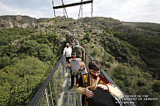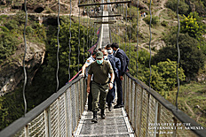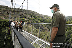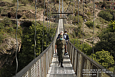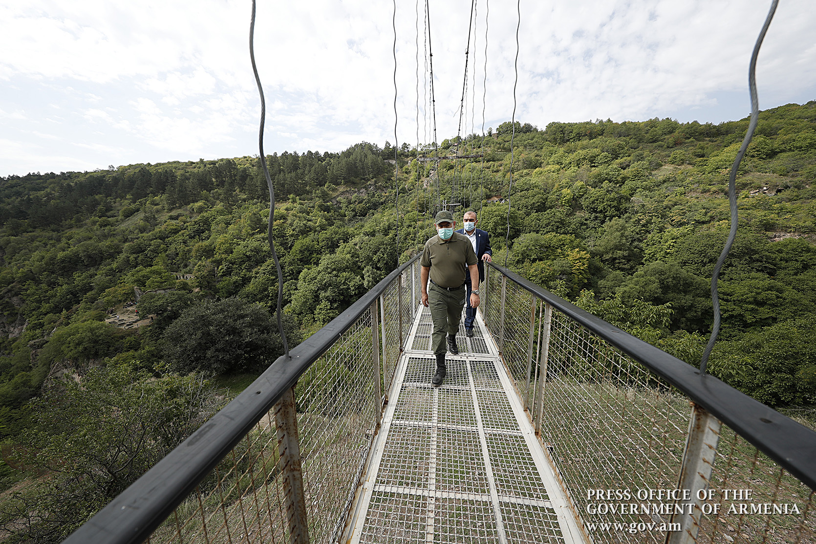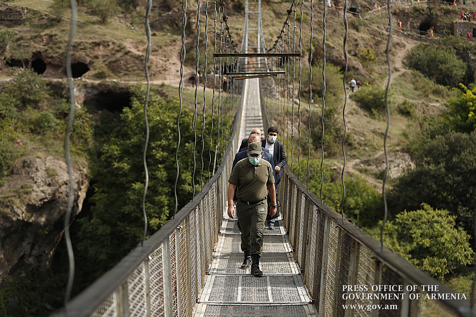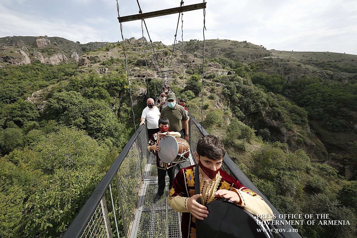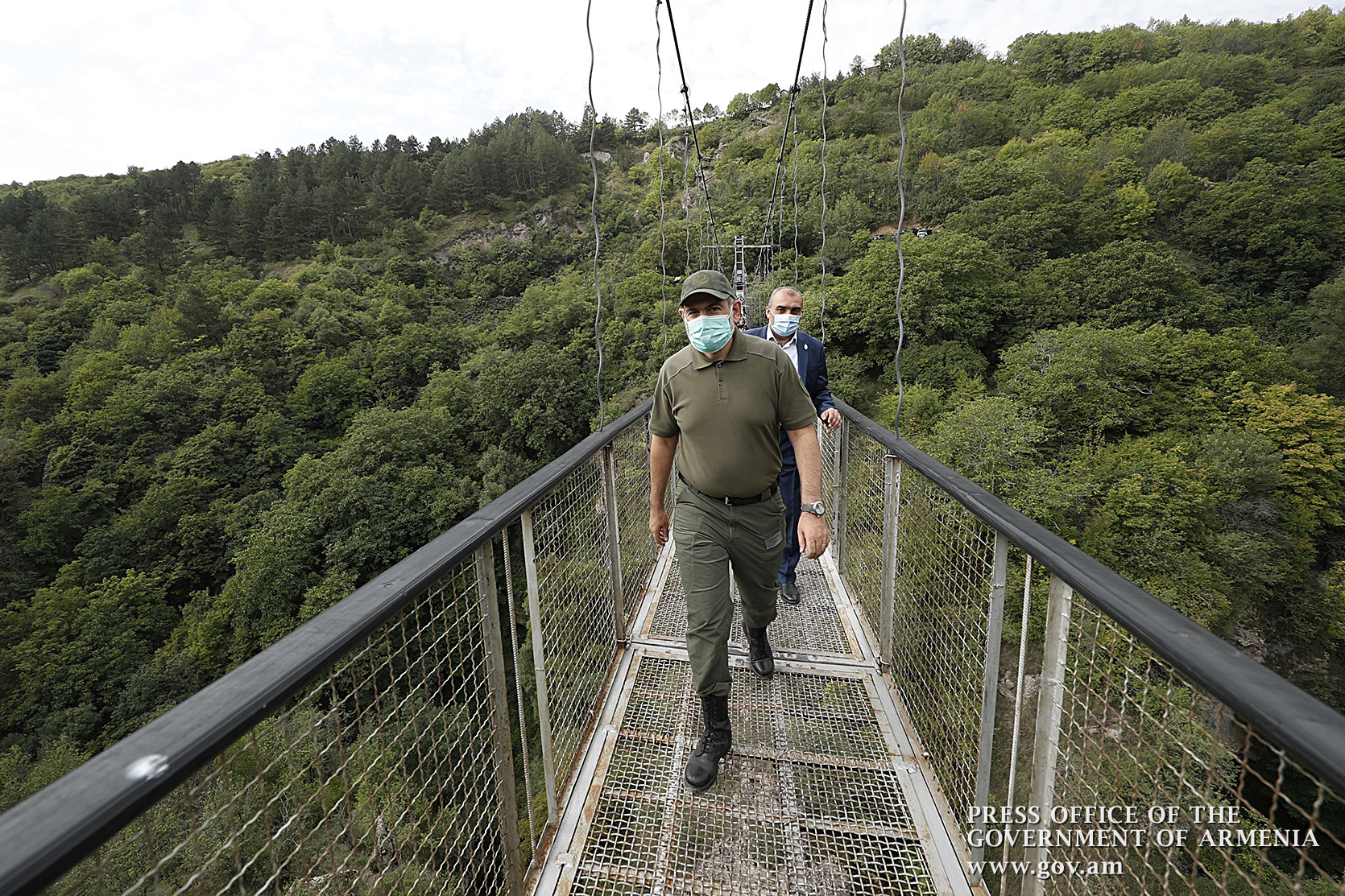 Նիկոլ Փաշինյանը քայլել է Խնձորեսկի ճոճվող կամուրջով և դիտել կամուրջի հարակից տարածքում Սպարապետի օրվա առթիվ պատրաստված երաժշտական ցուցադրական ելույթները։
