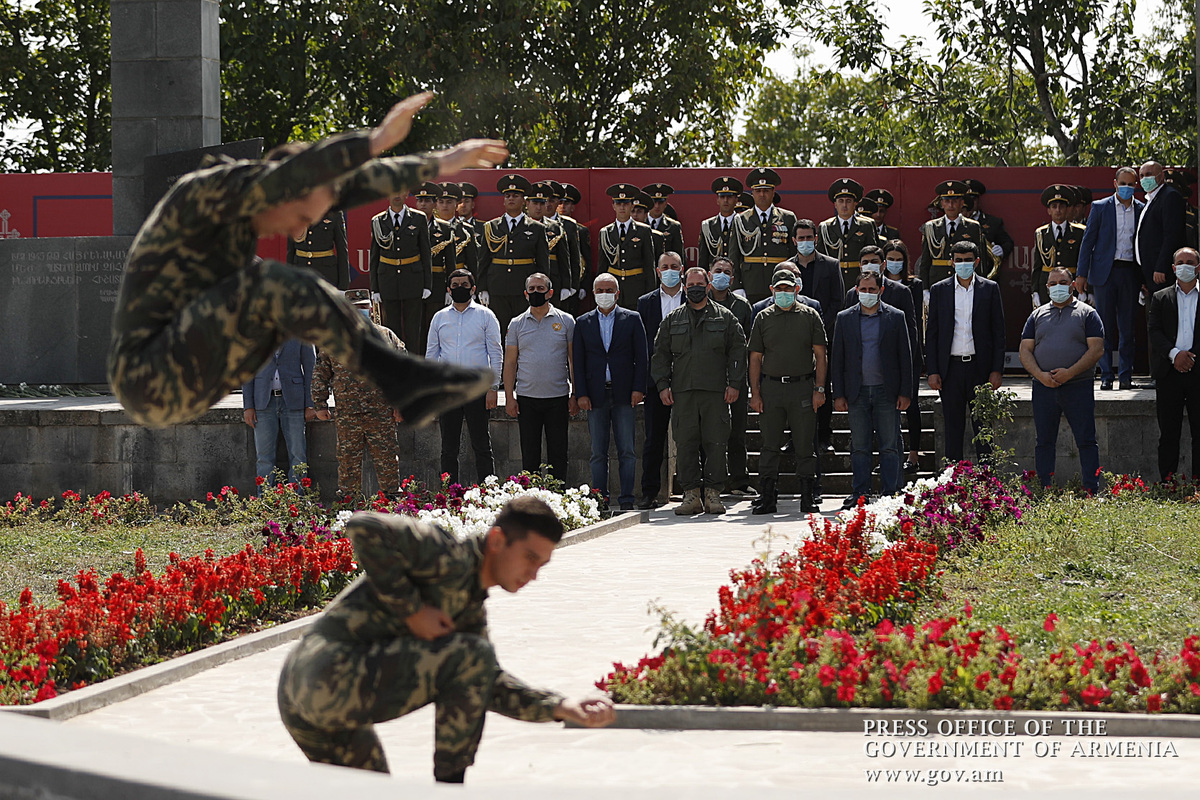 Նիկոլ Փաշինյանը նախ այցելել է Մխիթար Սպարապետի գերեզման` ծաղիկներ խոնարհել Սպարապետի շիրիմին և հարգանքի տուրք մատուցել նրա հիշատակին։ Այնուհետև տեղի է ունեցել առանձին զրահատանկային գումարտակի 15 զինծառայողի զինվորական երդման արարողություն, ընթերցվել է Սպարապետի խոսքը, հնչել է Հայաստանի Հանրապետության պետական օրհներգը։