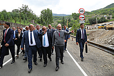Վարչապետը նախ ծանոթացել է Հ-26, /Մ-4/ - Ենոքավան – Կարմիրգյուղ - /Մ-16/ հանրապետական նշանակության ավտոճանապարհի 6.3 կմ հատվածի հիմնանորոգման աշխատանքների ընթացքին: Ծրագրի արժեքը 642 մլն դրամ է, որը հատկացրել է Կառավարությունը: