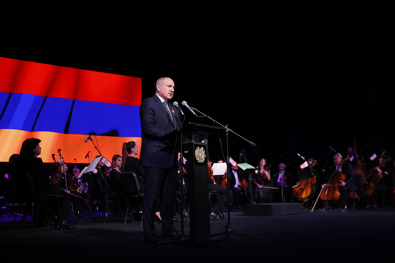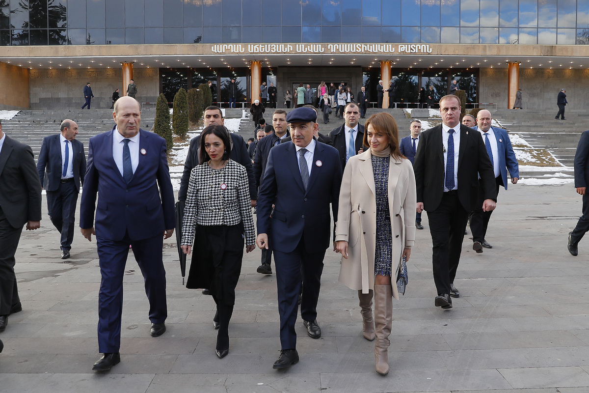 Հաջորդիվ վարչապետը տիկնոջ հետ այցելել է Գյումրու Վարդան Աճեմյանի անվան դրամատիկական թատրոն, որտեղ տեղի է ունեցել Շիրակի պետական համալսարանի 90 ամյակին նվիրված հոբելյանական միջոցառումը: Հանդիսավոր միջոցառմանը ներկա են գտնվել նաև ՀՀ վարչապետի աշխատակազմի ղեկավար Արայիկ Հարությունյանը, ԿԳՄՍ նախարար Ժաննա Անդրեասյանը, ՏԿԵ նախարար Դավիթ Խուդաթյանը, Գյումրու քաղաքապետի պաշտոնակատար Սարիկ Մինասյանը, օրենսդիր և գործադիր մարմինների ներկայացուցիչներ, համալսարանի պրոֆեսորադասախոսական կազմը, ուսանողներ: