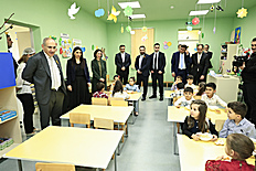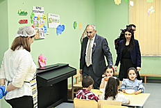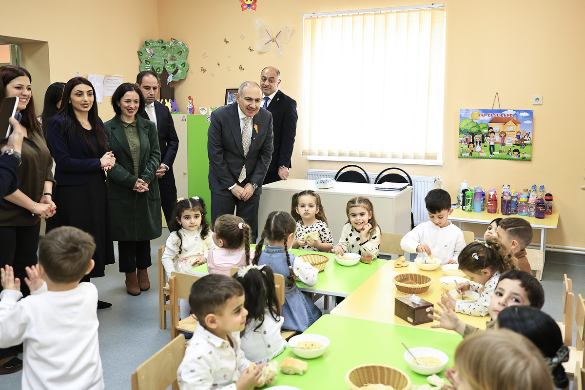 Վարչապետի առաջին կանգառը եղել է Վաղարշապատ համայնքի Էջմիածին բնակավայրի թիվ 6 «Արևիկ» մանկապարտեզում։ Սուբվենցիոն ծրագրի իրականացման արդյունքում հիմնանորոգվել է մանկապարտեզի շենքը, ինչպես նաև կատարվել են նոր եռահարկ մասնաշենքի կառուցման աշխատանքներ։ Շինարարական աշխատանքների ընդհանուր արժեքը կազմել է 734 մլն դրամ, որից ավելի քան 513 մլն դրամը հատկացվել է Կառավարության կողմից: Մանկապարտեզ է հաճախում 294 սան։