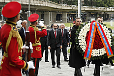 Եվ մեր այսօրվա Հայաստանն առաջին հերթին ոգու, սիրո, համերաշխության և գաղափարի պետություն է, այդպիսին է այսօր և այդպիսին պետք է շարունակի մնալ ընդմիշտ, որովհետև նյութականը կարելի է ջարդել, կոտրել, ոչնչացնել, իսկ այն, ինչ կապված է ոգու հետ, մտքի հետ, անջարդելի է, անկոտրելի է, անհաղթահարելի է: Եվ ես ուզում եմ, որ այս ոգին, այս ոգեղենը, այլ ոչ թե մերկանտիլ հաշվարկը լինի հայ-վրացական հարաբերություններում: Եվ մենք հենց այդ ոգու և ոգեղենի վրա պետք է կառուցենք մեր հարաբերությունները մեր հարևան և եղբայրական երկրի հետ: Մեր համատեղ ոգեղենը պետք է հաղթի և մեր ժողովուրդներն իրենց համատեղ հարևանության մեջ պետք է նորանոր հաղթանակներ կերտեն և պետք է կերտեն համատեղ երջանկություն խաղաղ, ազատ և երջանիկ այս տարածաշրջանում: Եվ այս տարածաշրջանը պետք է դառնա այդպիսին: