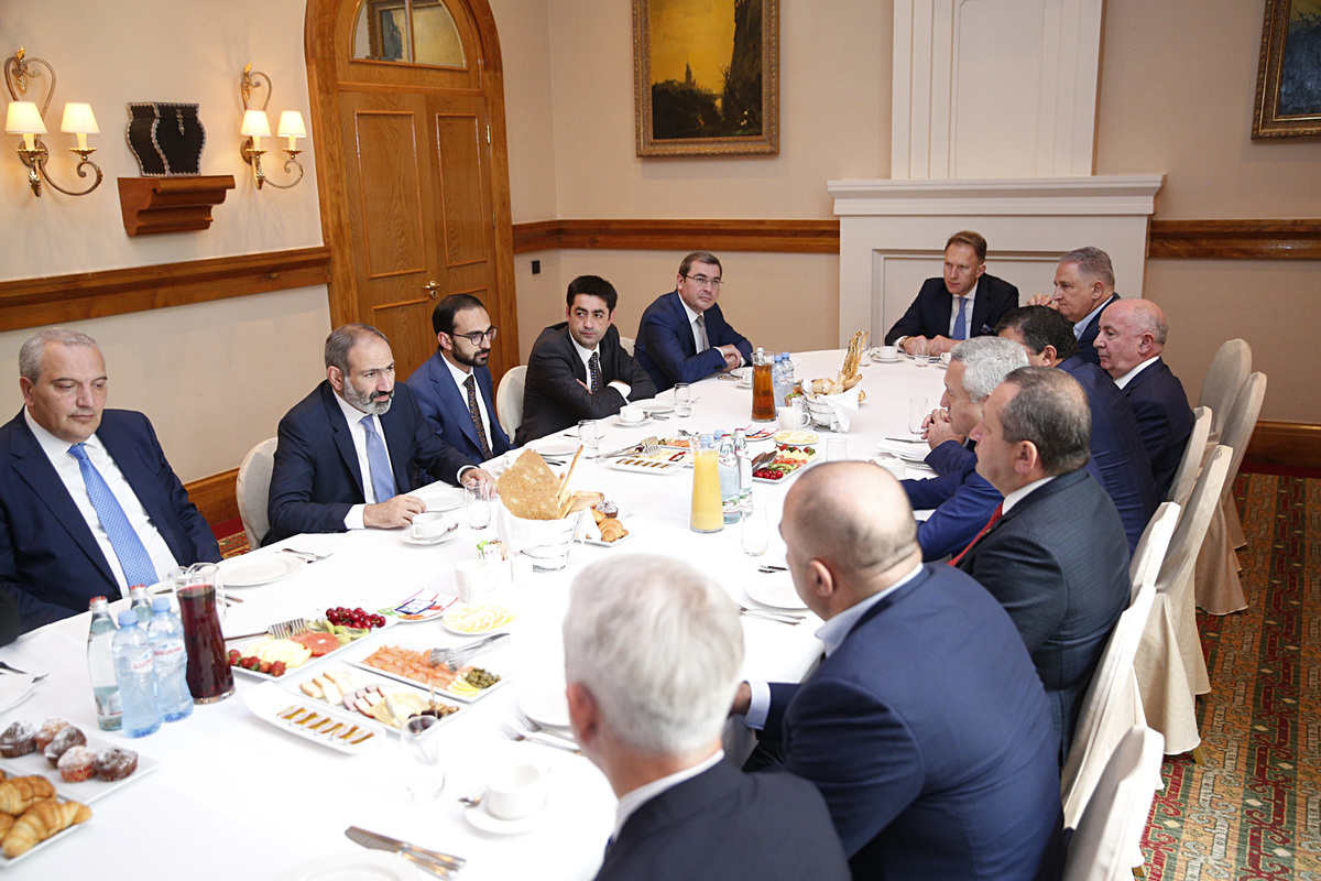 Պաշտոնական այցով Վրաստանում գտնվող վարչապետ Նիկոլ Փաշինյանը հանդիպել է վրացի և հայ գործարարների հետ: Վարչապետը նախ աշխատանքային նախաճաշ է ունեցել վրացի խոշոր գործարարների, ապա աշխատանքային ճաշ՝ այդ երկրում գործունեություն ծավալող հայազգի գործարարների հետ: