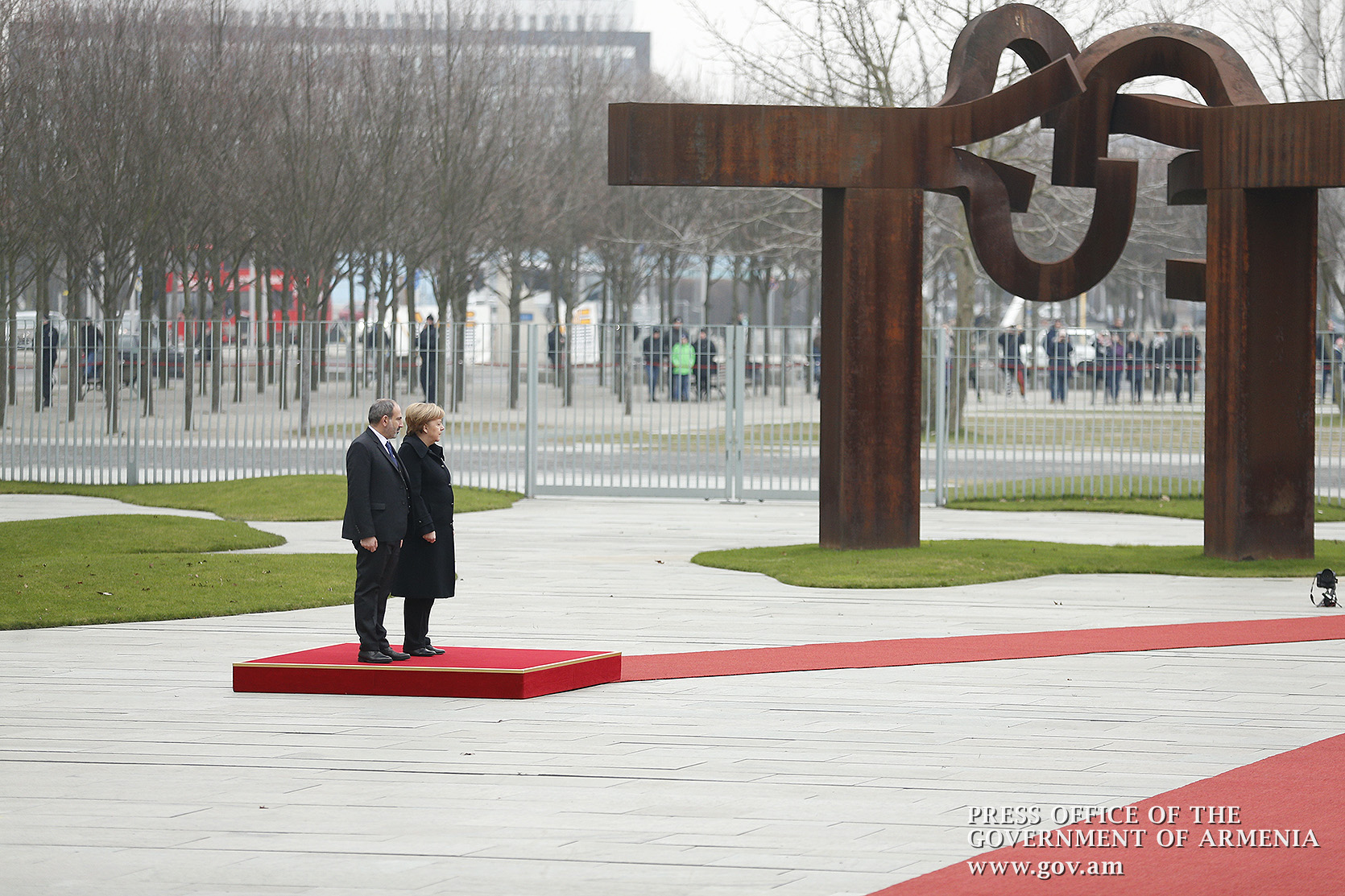 ԳԴՀ կանցլեր Անգելա Մերկել- Հավատում եմ, որ լավ է, եթե մարդիկ իրար հետ խոսեն, բայց երկու կողմը պատրաստ պետք է լինի, խոսքերին պետք է որոշ գործողություններ հետևեն: Եվ կարծում եմ, որ խիզախ քայլեր է ձեռնարկել պարոն վարչապետը, բայց դա պահանջում է, որ դիմացի կողմն էլ պատրաստակամ լինի նման խիզախ քայլեր իրականացնել: Կարծում եմ, որ պարոն վարչապետը պետք է շարունակի, բայց վերջին հաշվով երկու կողմերը պետք է համաձայնվեն: