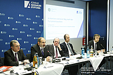 Մինչ այդ` փետրվարի 1-ի առավոտյան, վարչապետն այցելել է գերմանական Կոնրադ Ադենաուեր հիմնադրամի գրասենյակ, որտեղ նրան դիմավորել է հիմնադրամի նախագահ Նորբերթ Լամերթը: Միջոցառմանը ներկա էին Գերմանիայի Բունդեսթագի պատգամավորներ, ԳԴՀ կանցլերի աշխատակազմի, գերմանական քաղաքական և հասարակական շրջանակների ներկայացուցիչներ: