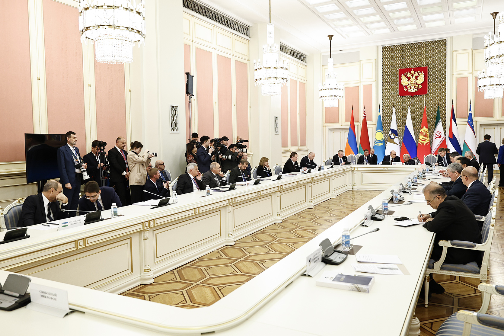 Ընդլայնված կազմով նիստին բացի ԵԱՏՄ անդամ պետությունների կառավարությունների ղեկավարներից մասնակցել է նաև ԵԱՏՄ-ում դիտորդ երկրի կարգավիճակ ունեցող Ուզբեկստանի վարչապետ Աբդուլլա Արիպովը: