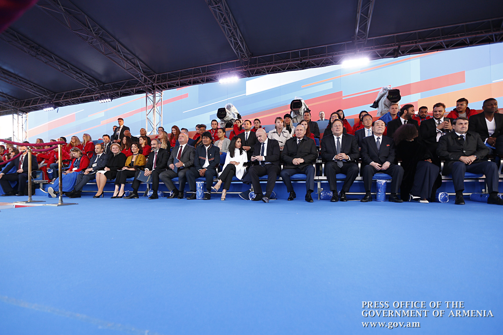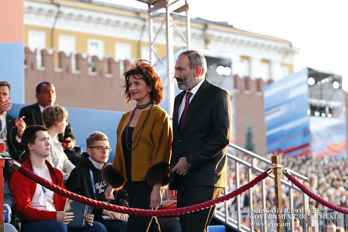 Աշխատանքային այցով Ռուսաստանի Դաշնությունում գտնվող վարչապետ Նիկոլ Փաշինյանը և տիկին Աննա Հակոբյանը Կարմիր հրապարակում ներկա են գտնվել ֆուտբոլի Աշխարհի առաջնությանը նվիրված գալա-համերգին: Միջոցառմանը ներկա են եղել նաև ՌԴ նախագահ Վլադիմիր Պուտինը և մի շարք այլ պետությունների նախագահներ ու կառավարությունների ղեկավարներ, ովքեր ժամանել են Մոսկվա՝ ֆուտբոլի Աշխարհի առաջնության բացման հանդիսավոր արարողությանը ներկա գտնվելու նպատակով: Համերգի ընթացքում ելույթներով հանդես են եկել օպերային թատրոնի համաշխարհային աստղեր: