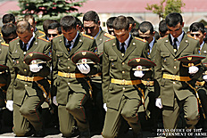 Լինել հրամանատար՝ նշանակում է լինել պատասխանատու ուրիշների առաջ և լինել պատասխանատու ուրիշների համար, լինել հրամանատար՝ նշանակում է ունենալ կամք և վճռականություն ամենակարևոր պահին զոհվելու հրամաններ արձակելու և սա չափազանց ծանր պատասխանատվություն է, և սա չափազանց հզոր պատասխանատվություն է, և այս պատասախանատվությունը կարող են կրել իրապես ուժեղ, անկոտրում կամքի տեր մարդիկ: Եվ ես ձեր հայացքներում տեսնում եմ, որ դուք ունեք կամքը ոչ միայն ծառայելու, այլև հաղթելու, հաղթանակ բերելու մեր ժողովրդին, մեր պետությանը, մեր հայրենիքին: Ես ձեր աչքերի մեջ տեսնում եմ մեր ապագա հաղթանակները, ես ձեր կեցվածքի մեջ տեսնում եմ մեր ապագա հաղթանակները և ուրեմն ձեզ մաղթում եմ փառավոր ծառայություն Հայաստանի զինված ուժերում, հայոց բանակում, որովհետև մեր նպատակը մեկն է, մեր ապագան մեկն է, մեր այս օրը մեկն է: Հայ ժողովուրդը հաղթել է պատերազմում, հայ ժողովուրդը հաղթել է պետականության կառուցման գործում և հայ ժողովուրդը հաղթել է իր իշխանությունն իր երկրում հաստատելու գործում և որևէ մեկը դրսից, թե ներսից չի կարող և չի համարձակվի այդ հաղթանակը խլել ժողովրդի ձեռքերից: Իսկ այդ հաղթանակի թիվ մեկ, ամենակարևոր պաշտպանները դուք եք: Եվ ուրեմն, կեցցե՛ Հայաստանի Հանրապետությունը, կեցցե՛ հայոց բանակը, կեցցե՛ն Հայաստանի զինված ուժերը և հայոց փառապանծ զինվորներն ու սպաները»:
