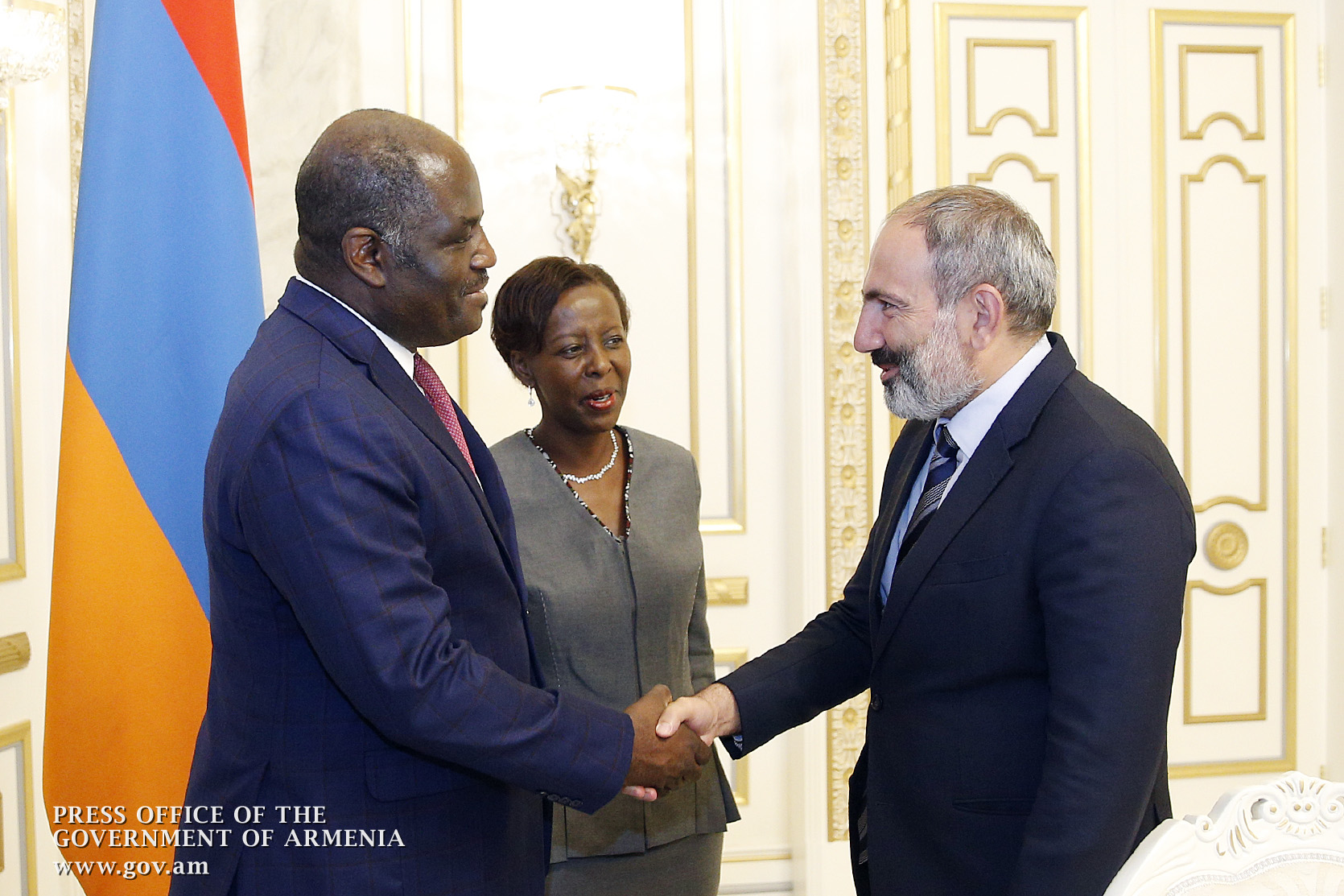 Վարչապետ Նիկոլ Փաշինյանն այսօր ընդունել է Ռուանդայի արտաքին գործերի նախարար Լուիզ Մուշիկիվաբոյին, ում՝ որպես Աֆրիկյան միության ներկայացուցիչ, ուղեկցում էր Գաբոնի արտաքին գործերի, ֆրանկոֆոնիայի և տարածաշրջանային ինտեգրացիայի նախարար Ռեջի Իմոնգոլը:
