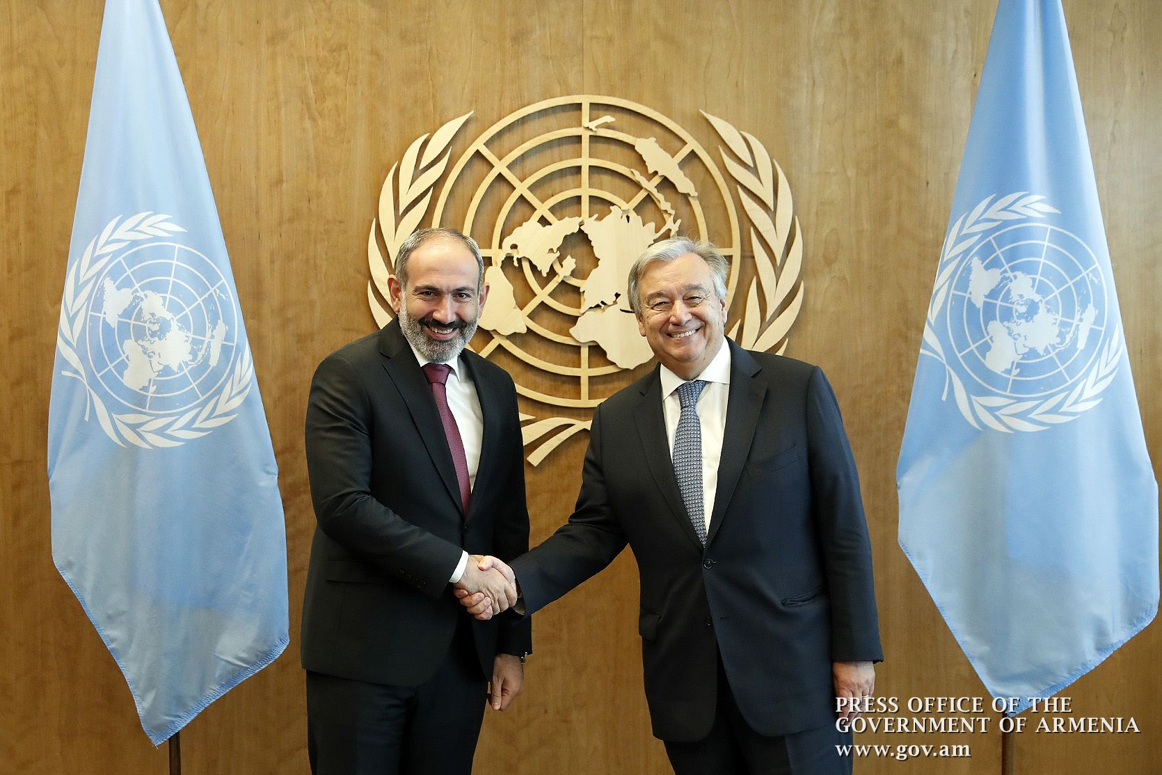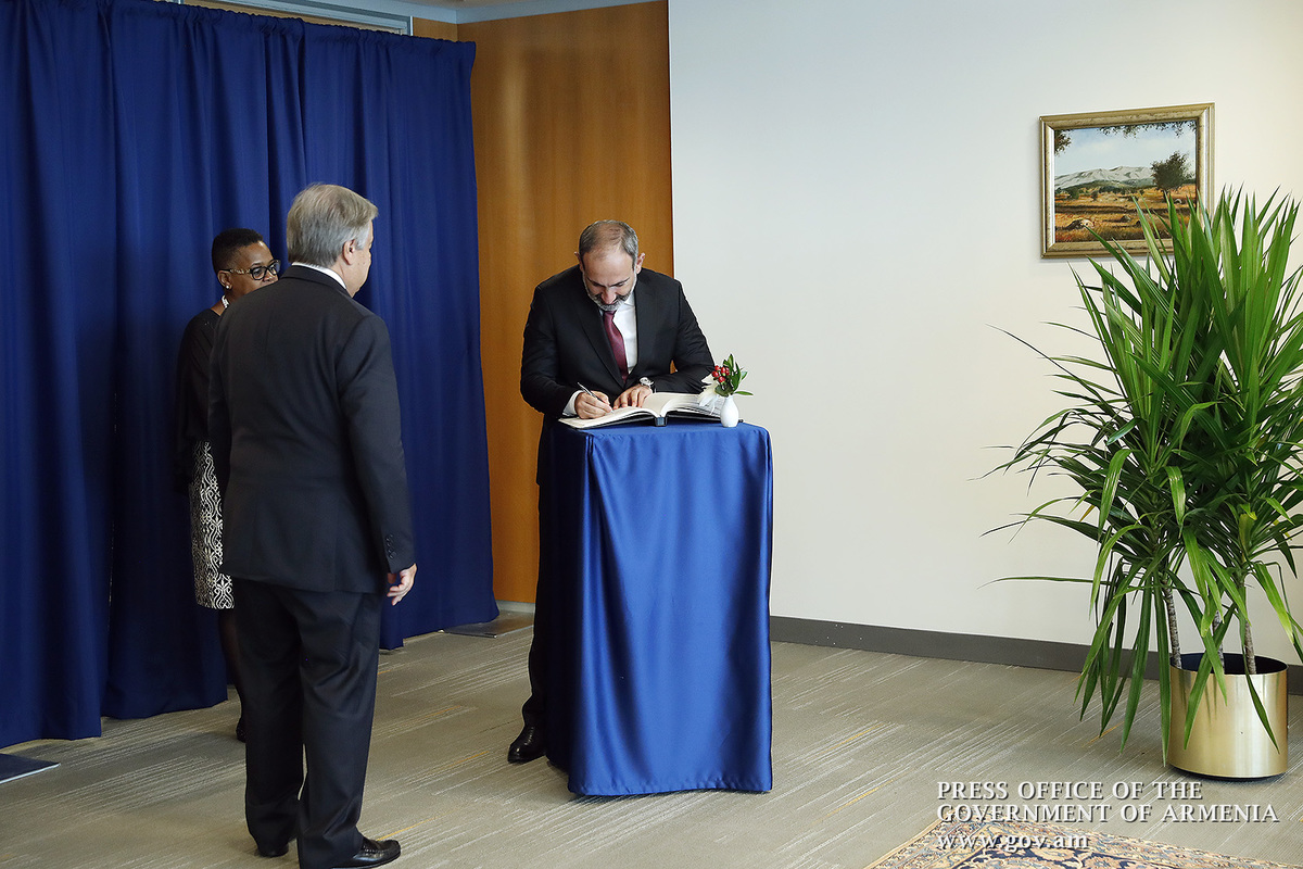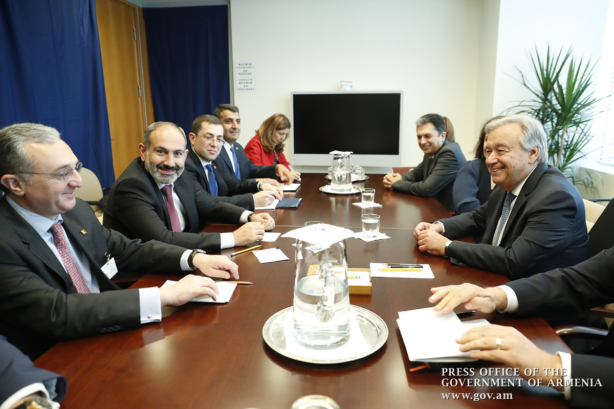 Վարչապետ Նիկոլ Փաշինյանը սեպտեմբերի 24-ին ՄԱԿ-ի կենտրոնակայանում հանդիպում է ունեցել ՄԱԿ-ի Գլխավոր քարտուղար Անտոնիո Գուտերեշի հետ: Վարչապետ Փաշինյանը կարևորել է ՀՀ կառավարության և Միավորված ազգերի կազմակերպության միջև սերտ և ամուր համագործակցությունը` ՄԱԿ-ի հռչակած արժեքների պաշտպանության և ամրապնդման գործում: Վարչապետն ընդգծել է, որ երկկողմ արդյունավետ փոխգործակցությունը նպաստում է մեր երկրում տարբեր ոլորտներում բարեփոխումների իրականացմանն ու հույս հայտնել, որ այդ ծրագրերը ոչ միայն կկրեն շարունակական բնույթ, այլ նաև կստանան նոր ազդակներ: Վարչապետն ընդգծել է, որ Հայաստանն ակտիվորեն ներգրավված է ՄԱԿ-ի և դրա կառույցների աշխատանքներում և հավելել, որ ՄԱԿ-ի թիրախային հետագա աջակցությունը Հայաստանին կխթանի և կամրապնդի Հայաստանի զարգացման ներուժը։