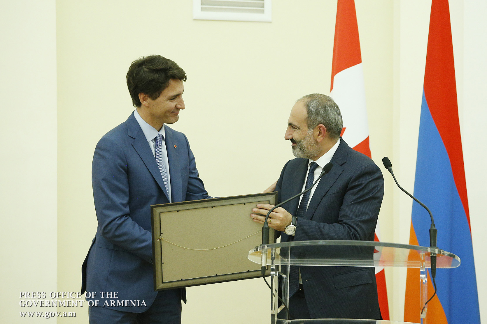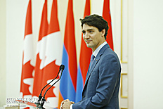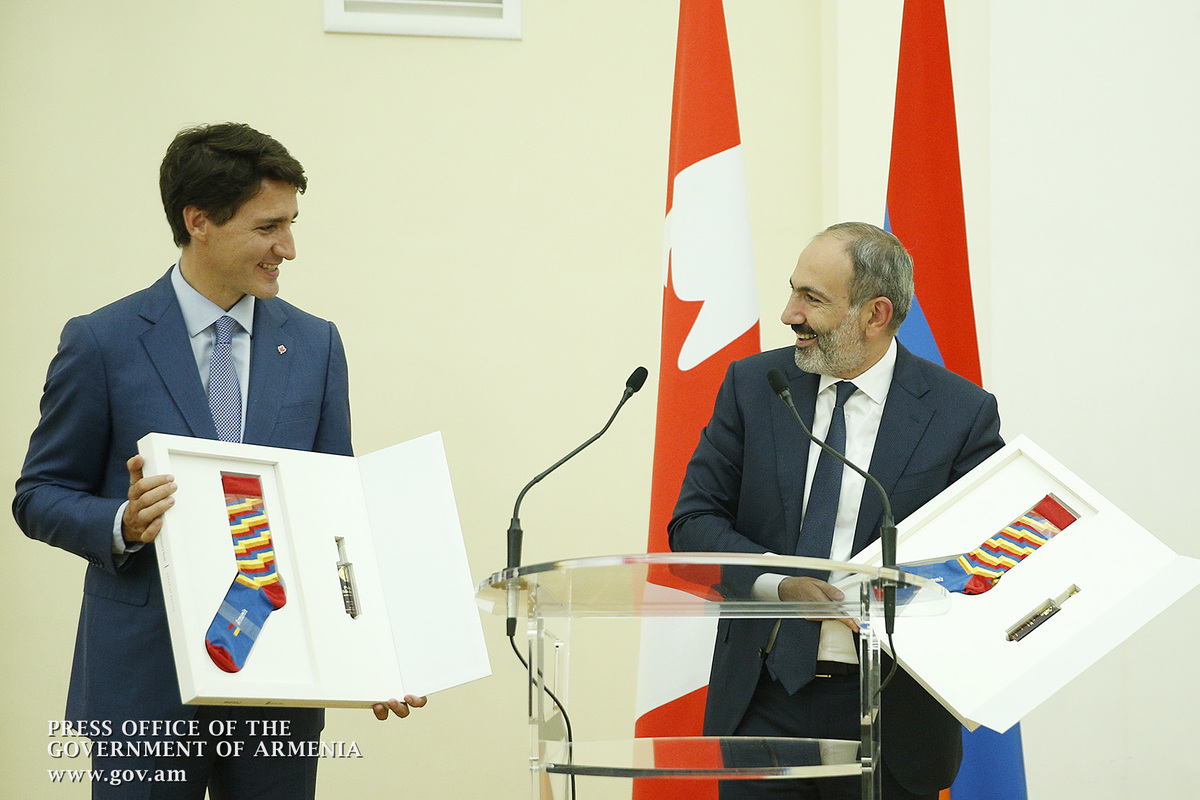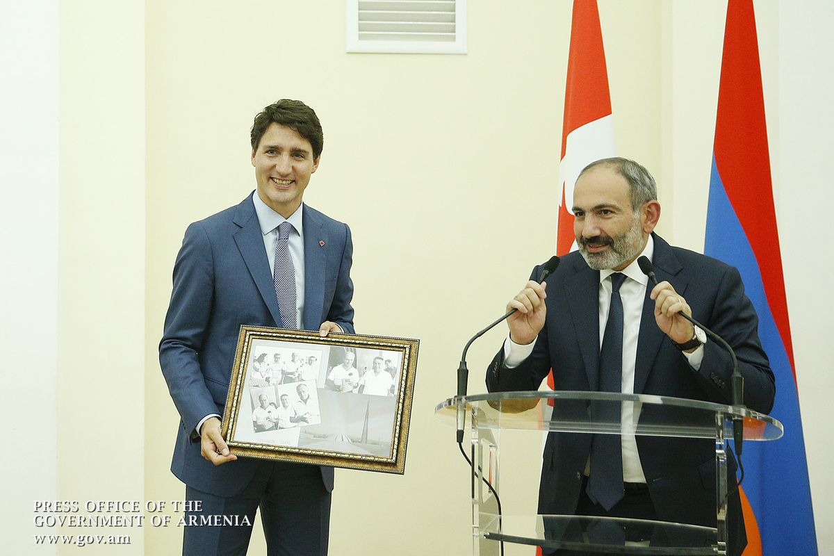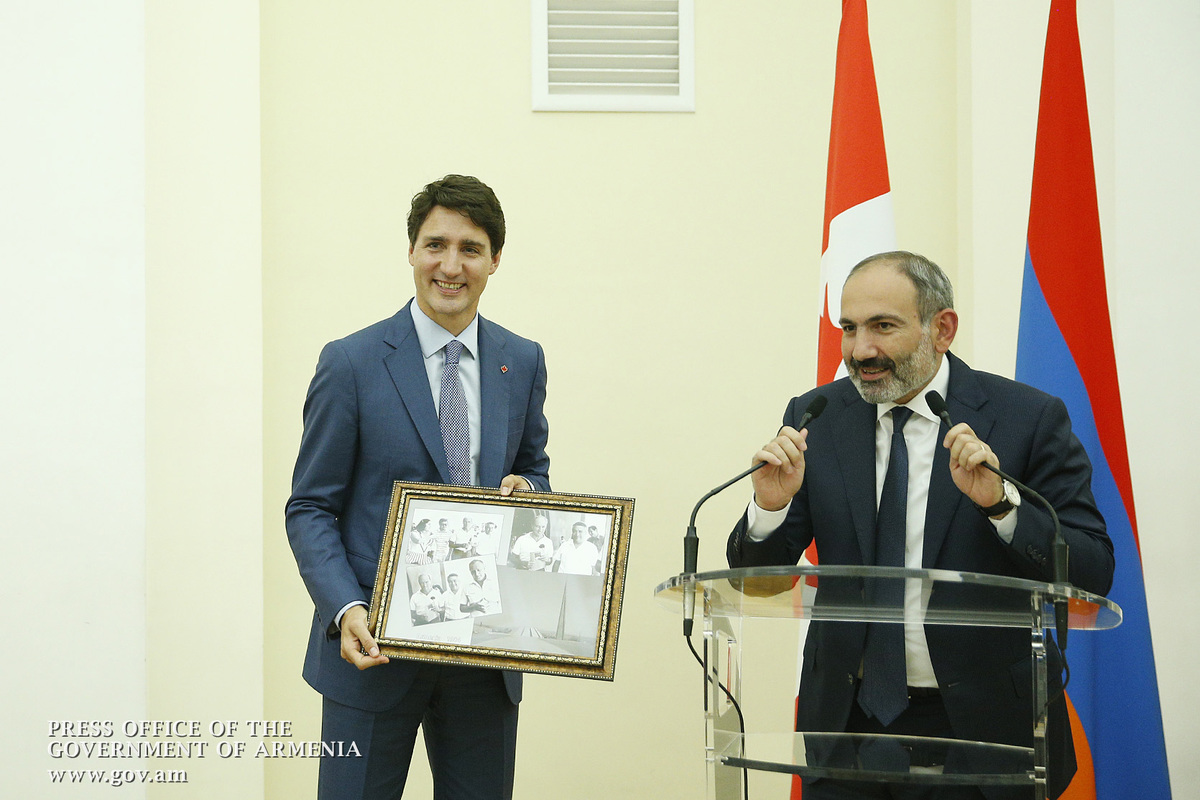 Այսօր մենք պարոն վարչապետի հետ քննարկում էինք դա, որ մարդկանց ամենաշատն անհրաժեշտ է ոչ թե սոցիալական ապահովվածությունը, որը պակաս կարևոր չէ, այլ հարգված լինելը սեփական իշխանությունների կողմից, լսված լինելը սեփական իշխանության կողմից: Մենք պետք է ապրենք՝ շրջապատված իրական բովանդակությամբ, որքան էլ դժվար լինի իրականությունը, որքան էլ ոչ այնքան հաճելի լինի իրականությունը: Ես գնահատում եմ այս իրադարձությունը, մեր այս հանդիպումը՝ շատ խորհրդանշական Նոր Հայաստանում և համարում եմ, որ Կանադայի մեծարգո վարչապետը՝ իմ բարեկամ Ջասթին Թրյուդոն, խորհրդանշում է ճշմարտության հաղթանակը: Ես հավատում եմ, որ ճշմարտության հաղթարշավը շարունակվելու է աշխարհում: Ես, ըստ էության, չխոսեցի մեր երկրների հարաբերությունների մասին, խոսեցի մարդկանց, երևույթների մասին և կարծում եմ՝ երկրների հարաբերություններն ավելի շատ պայմանավորվում են մարդկանց հարաբերություններով: Ես այս ամենով ցույց տվեցի, փորձեցի ընդգծել մեր երկրի վերաբերմունքը Կանադայի նկատմամբ, կանադայի ժողովրդի նկատմամբ և փորձեցի նկարագրել այն մթնոլորտը, որում պատկերացնում եմ մեր հարաբերությունների զարգացումը: