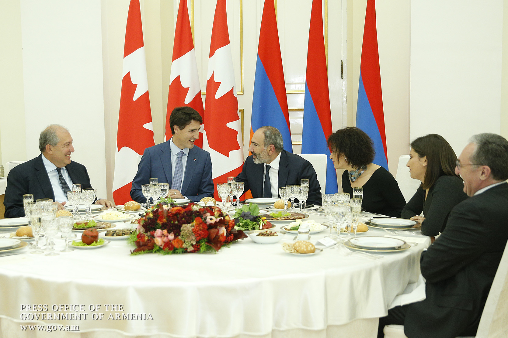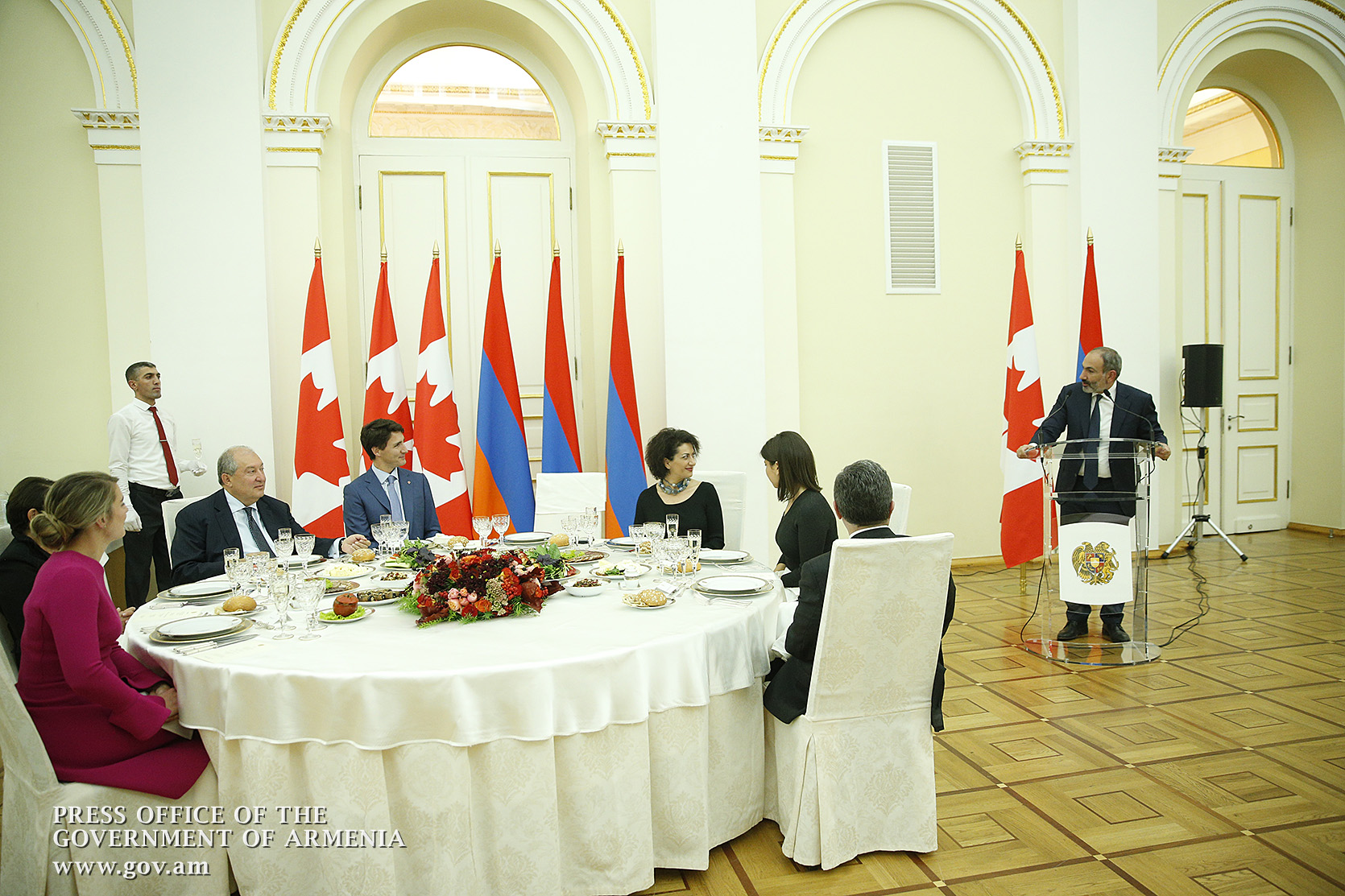 Վարչապետ Նիկոլ Փաշինյանի անունից` ի պատիվ Կանադայի վարչապետ Ջասթին Թրյուդոյի, տրվել է պաշտոնական ընթրիք
