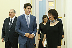 Սիրելի բարեկամներ, ընկերներ, այսօր մենք ընդունում ենք շատ պատվավոր մի հյուրի: Վերջին օրերին ես անընդհատ մի ձևակերպում եմ լսում Կանադայի իմ գործընկերոջ հասցեին, որը վստահ չեմ, որ հնարավոր է ճիշտ թարգմանել անգելերեն, բայց մարդիկ, այդ թվում՝ ինձ հարազատ, նրան նայելով ասում են՝ լույսի կտոր է: Եվ իսկապես շատ քիչ է պատահում, երբ մարդուն տեսնում ես էկրանին, լուսանկարի մեջ և իրականում ու չես գտնում ոչ մի տարբերություն էկրանի, լուսանկարի և իրականության միջև: Սա այն բացառիկ դեպքերից է, երբ մարդն իրական է իրականում, իրական է ֆոտոյի մեջ և իրական է հեռուստատեսությունում: Կարծում եմ, որ սա արտահայտում է ժամանակակից մարդու ամենակարևոր ձգտումը՝ լինել իրական, լինել շրջապատված իրական մարդկանցով, ունենալ իրական իշխանություն, իրական կառավարություն, որոնք ապրում են իրականության մեջ և հասկանում են իրական խնդիրները և կարող են խոսել ճշմարտության, այսինքնч իրականության մասին: Կարծում եմ, որ պարոն Թրյուդոն մեկն է այն համաշխարհային առաջնորդներից, ում ի հայտ գալը, երևալը քաղաքական բեմահարթակում և բարձունքներում նշանավորեց աշխարհում ծայր առած այն նոր միտումը, երբ մենք արարողակարգերը, կեղծիքները, սուտը փոխարինում ենք ճշմարտությամբ, իրականությամբ և անկեղծությամբ: Եվ ես կարծում եմ, որ սա իսկապես շատ կարևոր է, ամենակարևոր բանն է, որ մարդիկ ուզում են տեսնել: