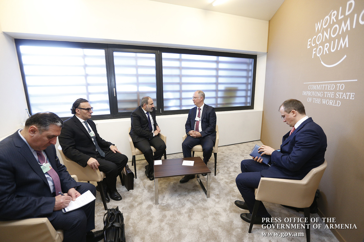 Վարչապետ Նիկոլ Փաշինյանը Դավոսում ընթացող Համաշխարհային տնտեսական համաժողովի շրջանակում շարունակում է հանդիպումները տարբեր երկրների գործարարների և ներդրողների հետ: