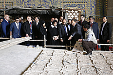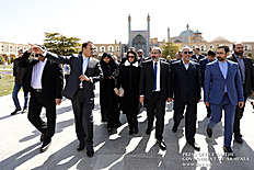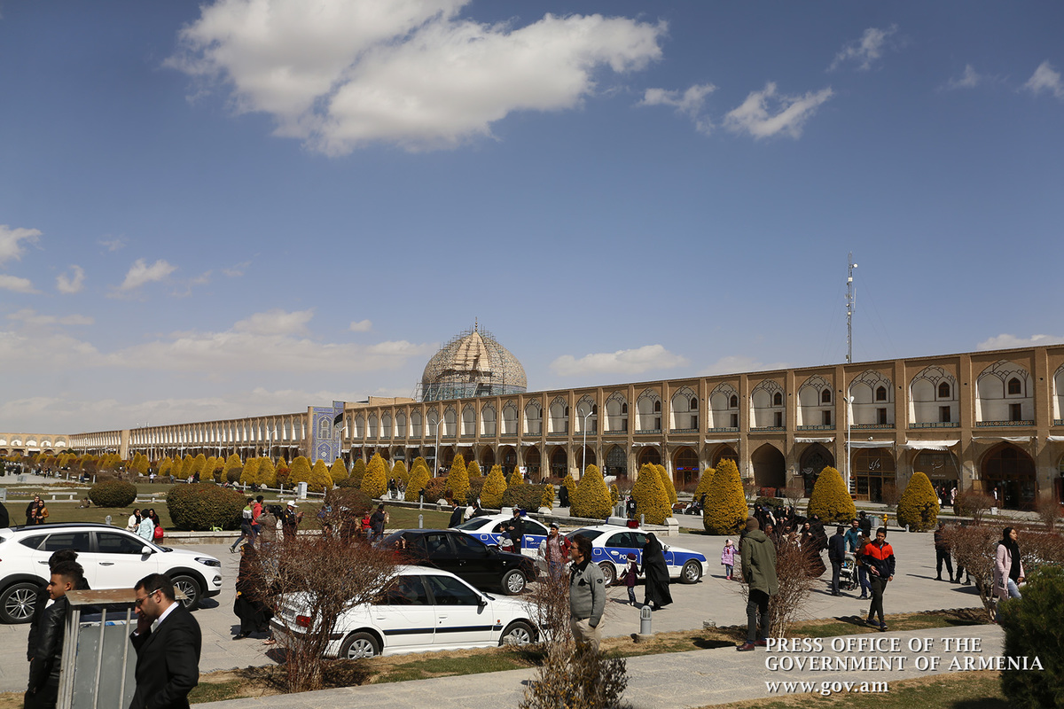 Նիկոլ Փաշինյանը Սպահանի նահանգապետ Աբբաս Ռեզայիի ուղեկցությամբ այցելել է Նաղշ-Է Ջահան հրապարակ, որը համարվում է քաղաքի կենտրոնական հրապարակը, որտեղ տեղակայված են հոգևոր և մշակութային տարբեր կառույցներ: