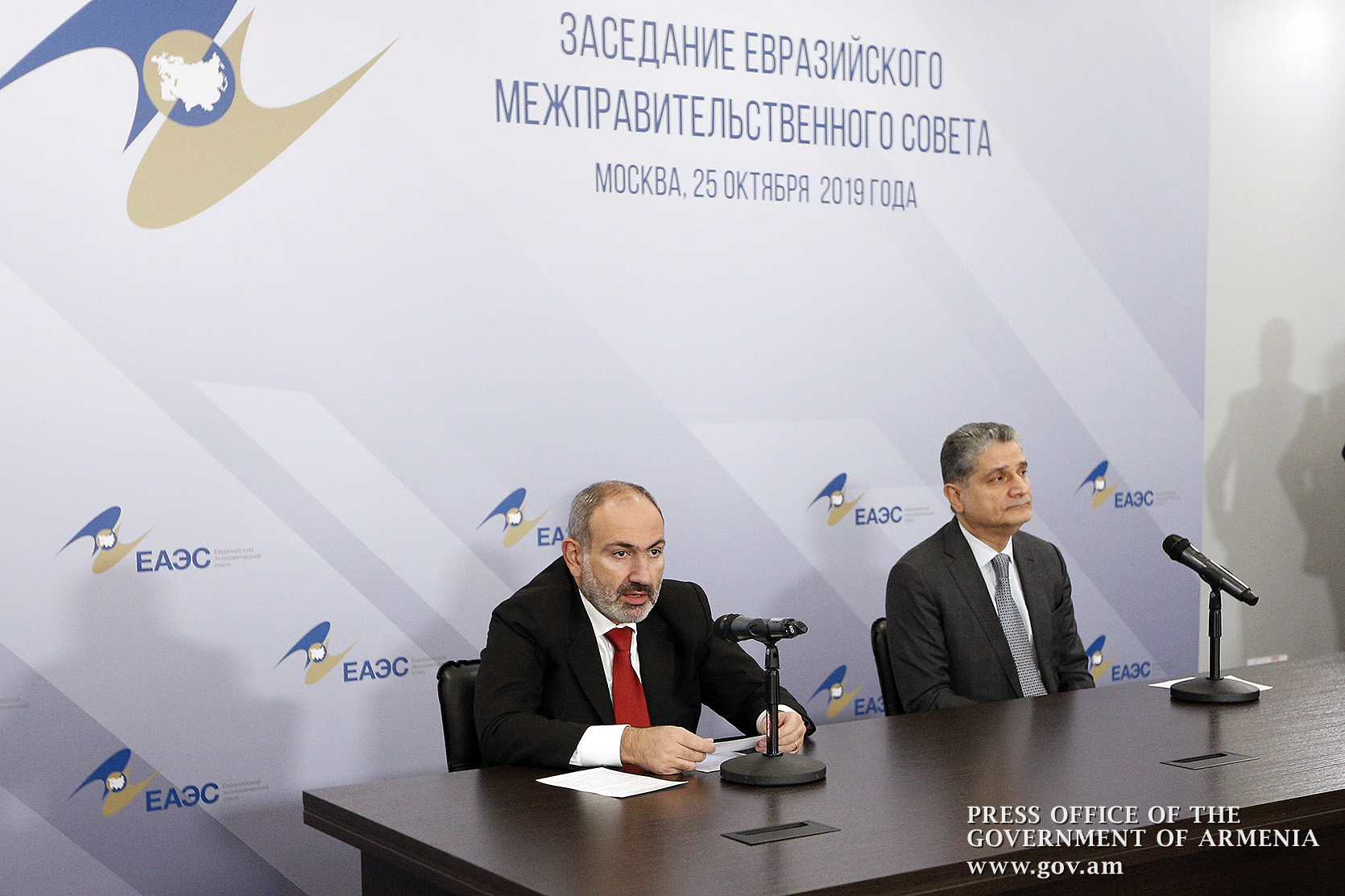 Վարչապետ Նիկոլ Փաշինյանը և Եվրասիական տնտեսական հանձնաժողովի նախագահ Տիգրան Սարգսյանը Եվրասիական միջկառավարական խորհրդի նիստից հետո հանդիպել են ԶԼՄ ներկայացուցիչներին և ներկայացրել նիստի ընթացքում քննարկված հարցերն ու բանակցությունների արդյունքները: