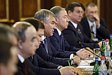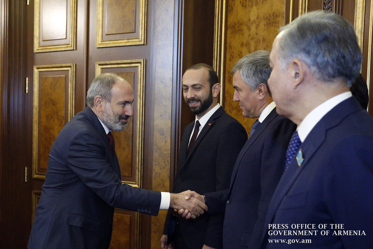 Վարչապետն ընդունել է Երևանում անցկացվող ՀԱՊԿ խորհրդարանական վեհաժողովի նիստին մասնակից ՀԱՊԿ անդամ պետությունների պատվիրակությունների ղեկավարներին՝ Ռուսաստանի Պետդումայի նախագահ Վյաչեսլավ Վոլոդինին, ՌԴ Դաշնային խորհդրի նախագահի տեղակալ Յուրի Վորոբյովին, Ղազախստանի խորհրդարանի ստորին պալատի նախագահ Նուռլան Նիգմատուլինին, Ղրղզստանի խորհրդարանի խոսնակ Դաստանբեկ Ջումաբեկովին, Տաջիկստանի խորհրդարանի նախագահ Շուկուրջոն Զուխուրովին, Բելառուսի խորհրդարանի Ներկայացուցիչների պալատի ազգային անվտանգության հարցերով մշտական հանձնաժողովի նախագահի տեղակալ Վլադիմիր Բազանովին: