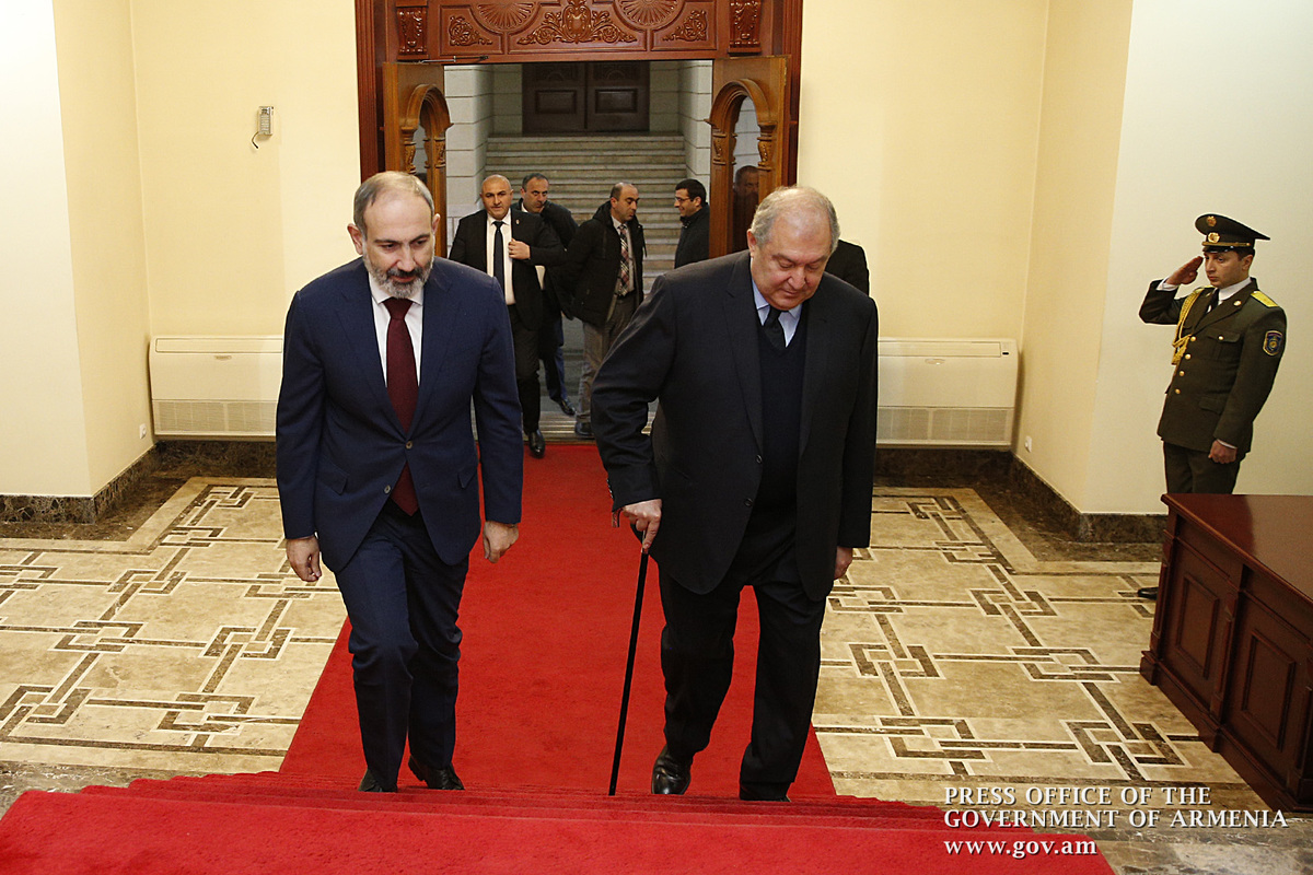 Վարչապետ Նիկոլ Փաշինյանն այսօր ՀՀ նախագահի նստավայրում աշխատանքային հանդիպում է ունեցել Հանրապետության նախագահ Արմեն Սարգսյանի հետ: