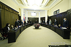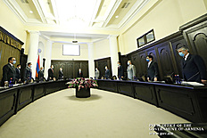 Հարգելի գործընկերներ, վերջին օրերին Հայաստան-Ադրբեջան սահմանին տեղի ունեցած լարվածության հետևանքով զոհվել են Հայաստանի Զինված ուժերի մայոր Գարուշ Համբարձումյանը, Զինված ուժերի կապիտան Սոս Էլբակյանը, Զինված ուժերի կրտսեր սերժանտներ Սմբատ Գաբրիելյանը, Գրիշա Մաթևոսյանը: Ես առաջարկում եմ մեկ րոպե լռությամբ հարգել մեր զոհերի հիշատակը»:
