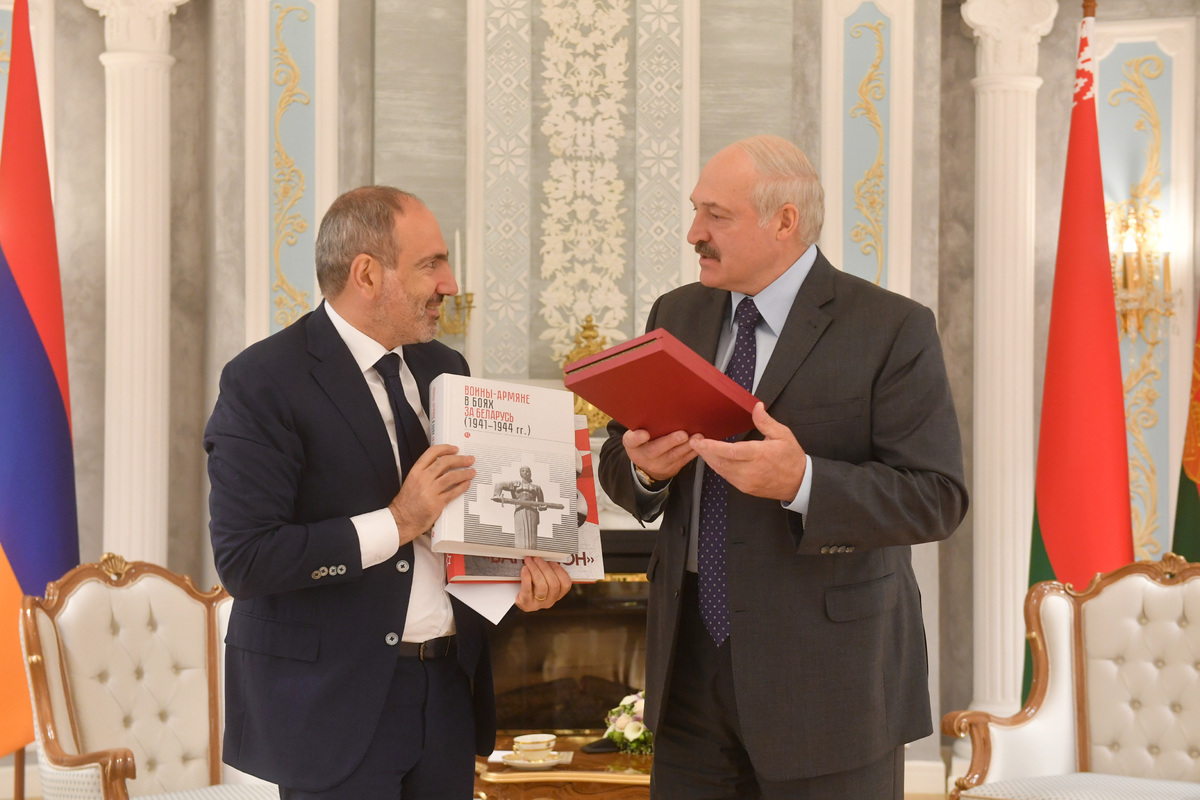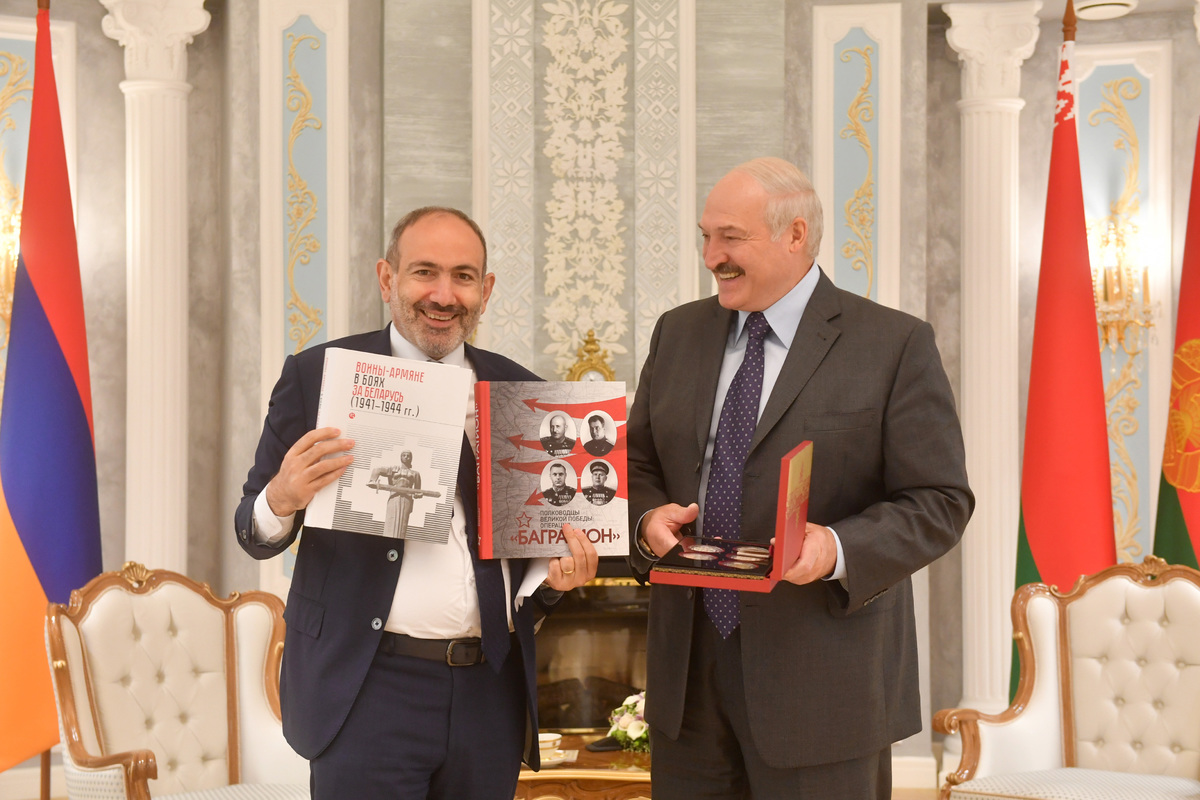 ՀՀ վարչապետը նախագահ Ալեքսանդր Լուկաշենկոյին է նվիրել «Հայ մարտիկները Բելառուսի ազատագրման մարտերում (1941-1944 թթ.)» գիրքը, որը լույս է տեսել Բելառուսի` ֆաշիզմից ազատագրման 75-ամյակի տոնակատարության շրջանակներում, ինչպես նաև Հայագիտական ուսումնասիրությունների զարգացման և աջակցման «ԱՆԻՎ» հիմնադրամի անմիջական մասնակցությամբ ստեղծված «Մեծ Հաղթանակի հրամանատարները․ «Բագրատիոն» գործողություն» ալբոմը, որում զգալի մաս է նվիրված մարշալ Հովհաննես Բաղրամյանի անձնական ներդրմանը ազատագրման գործում: