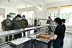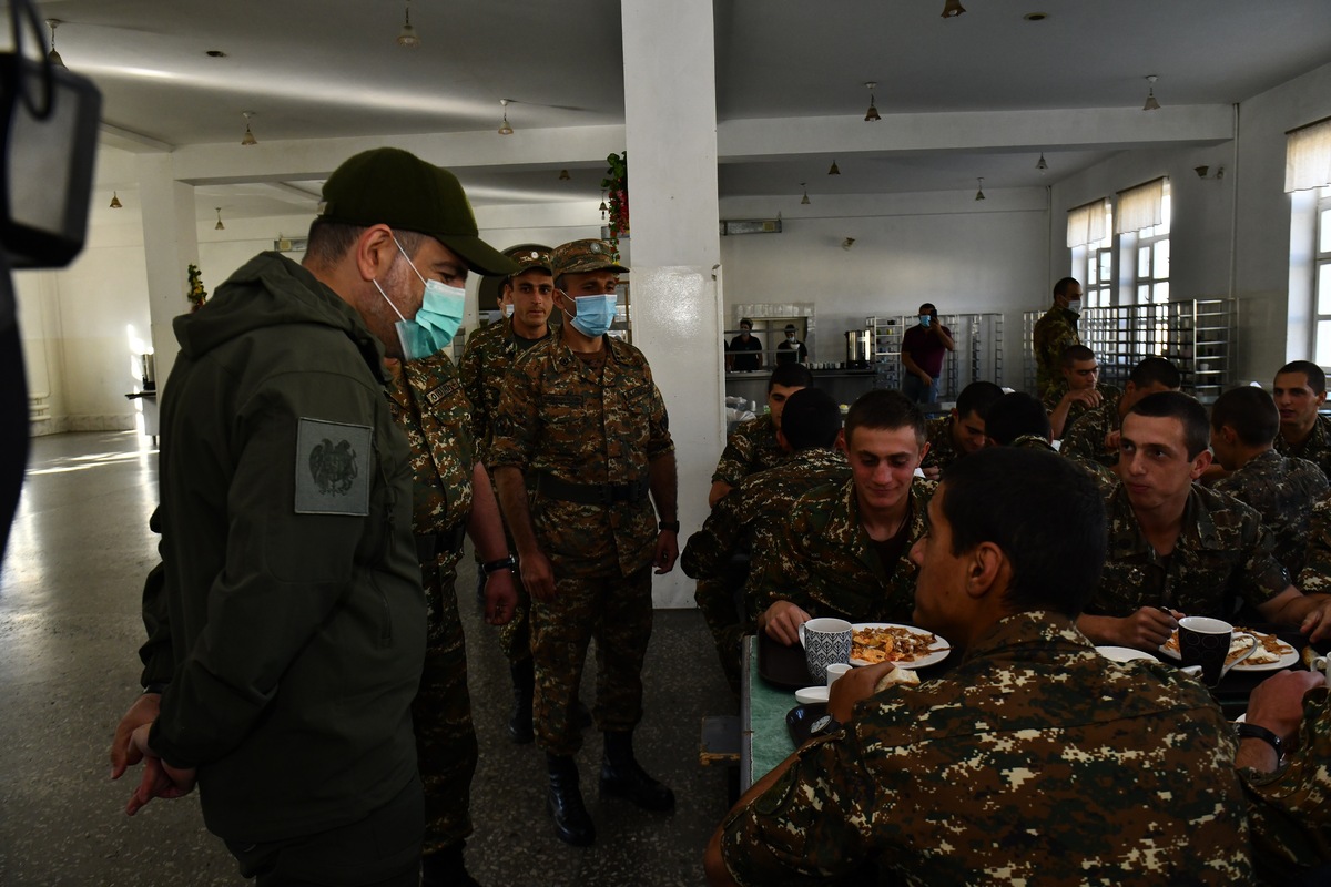 Նիկոլ Փաշինյանը շրջել է նաև ճաշարանում, ողջունել նախաճաշող զինծառայողներին և ծանոթացել ճաշացանկին, որը համապատասխանում է Զինված ուժերում ներդրվող նոր սննդակարգին։