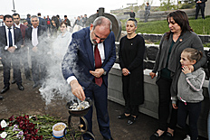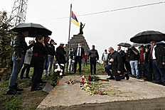 Շնորհակալ եմ բոլորիցդ: Ուզում եմ խոնարհումով մեր բոլոր նահատակների առաջ՝ շնորհավորել բոլորիս եռատոնի առիթով: Այս տարի մենք տրտմած ենք, տխուր ենք, այլ կերպ ենք մտածում, բայց սա շատ լավ առիթ է, որ մեր մասին մտածենք, մենք մեզ ավելի լավ ճանաչենք, ինքնահայեցման մի շրջան անցնենք, որից դուրս ենք գալու ուժեղացած, անպայման ուժեղացած՝ հանուն մեր նահատակների, հանուն մեր զինվորների, հանուն մեր երեխաների»: