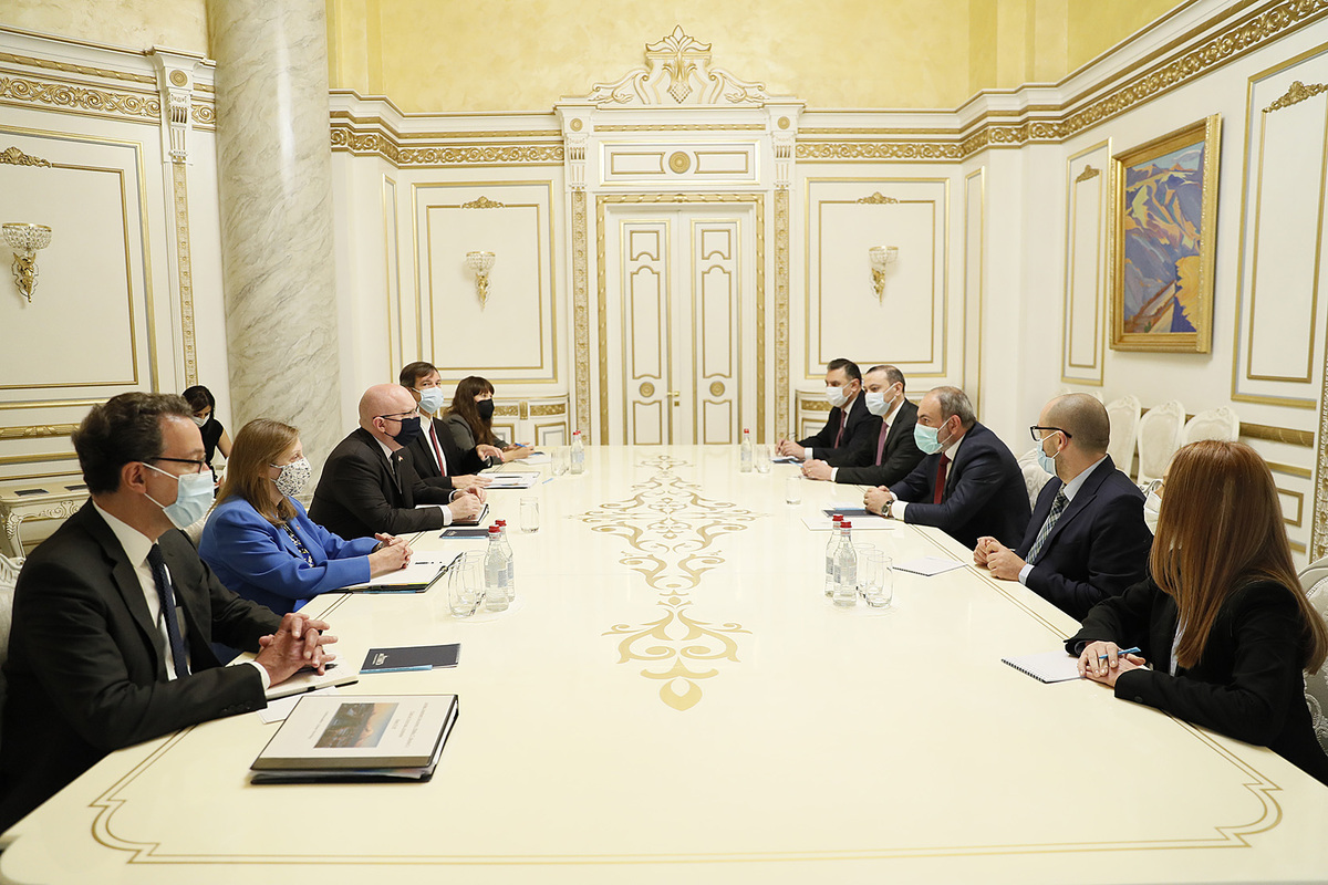 Արցախի հարցի համատեքստում ՀՀ վարչապետի պաշտոնակատարն ընդգծել է՝ հայկական կողմի դիրքորոշումն այն է, որ Լեռնային Ղարաբաղի հակամարտությունը պետք է կարգավորվի ԵԱՀԿ Մինսկի խմբի համանախագահության հովանու ներքո խաղաղ գործընթացի շրջանակում, համանախագահների կողմից առաջարկված սկզբունքների հիման վրա: