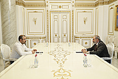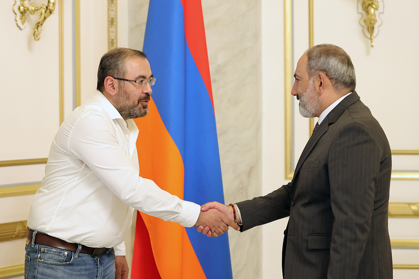 Նիկոլ Փաշինյան - Հարգելի պարոն Սահակյան, նախ շնորհակալ եմ հրավերն ընդունելու համար: Ես այսօր կուզենայի լսել Ձեր տեսակետները քաղաքական կյանքի հետագա ընթացքի վերաբերյալ: Նաև կուզենայի լսել, թե ինչ պատկերացումներ ունեք, որպեսզի արտախորհրդարանական ուժերը և կառավարությունը փոխադարձ լսելիության, հասանելիության ավելի բարձր մակարդակ ունենան: Եվ եթե այլ մտքեր ունեք, իհարկե նաև՝ այդ մտքերը: