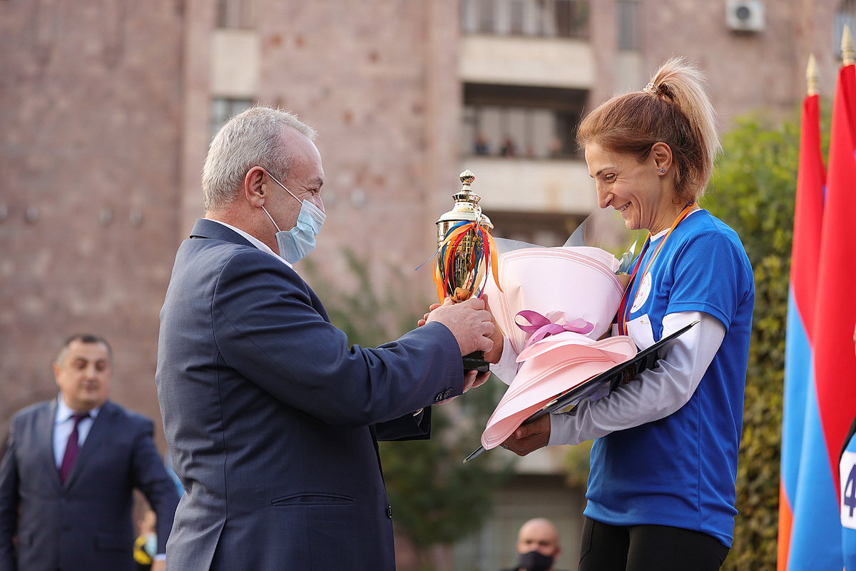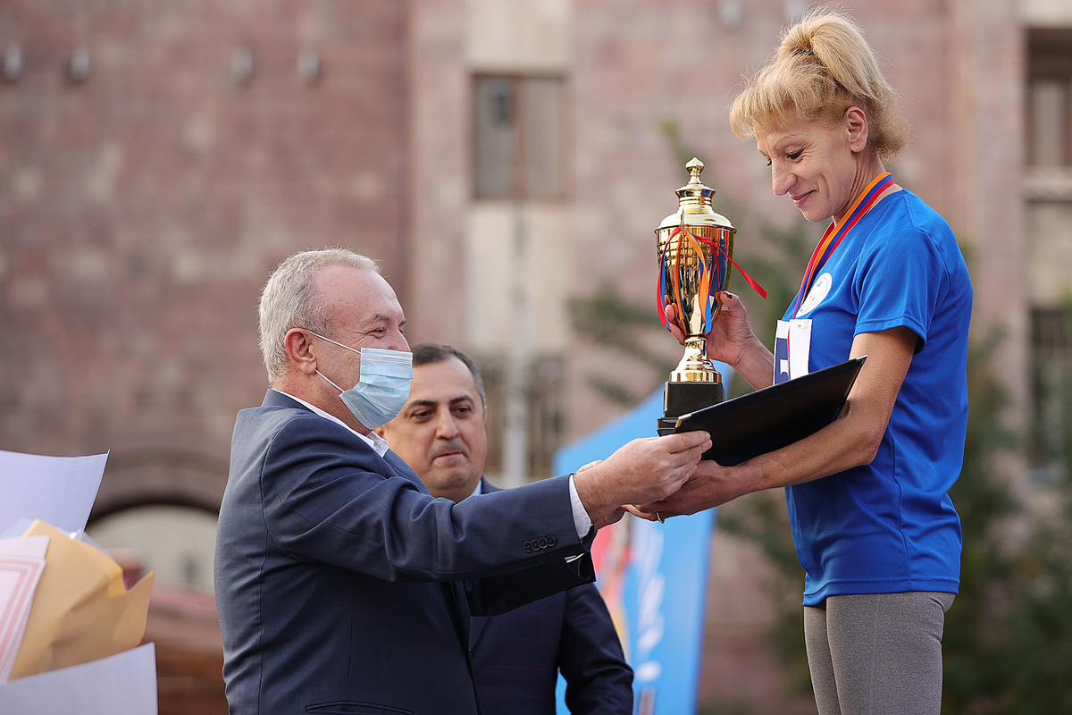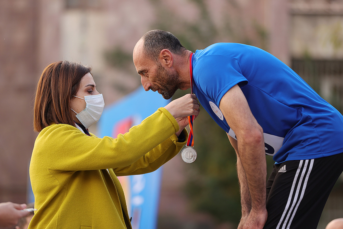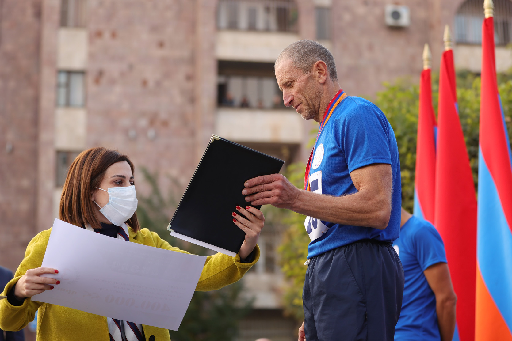 Տարբեր տարիքային խմբերում հաղթողներին մրցանակները հանձնել են վարչապետ Նիկոլ Փաշինյանը, Վարչապետի աշխատակազմի ղեկավար Արայիկ Հարությունյանը, Կրթության, գիտության, մշակույթի և սպորտի նախարար Վահրամ Դումանյանը, Առողջապահության նախարար Անահիտ Ավանեսյանը, Արմավիրի մարզպետ Համբարձում Մաթևոսյանը և Էջմիածնի քաղաքապետ Դիանա Գասպարյանը: Վարչապետը պարգևներ է հանձնել նաև կանանց և տղամարդկանց մրցավազքին մասնակցած ամենատարեց վազորդներին՝ 73-ամյա Շուշանիկ Պողոսյանին և 79-ամյա Խաչատուր Փրխոյանին: