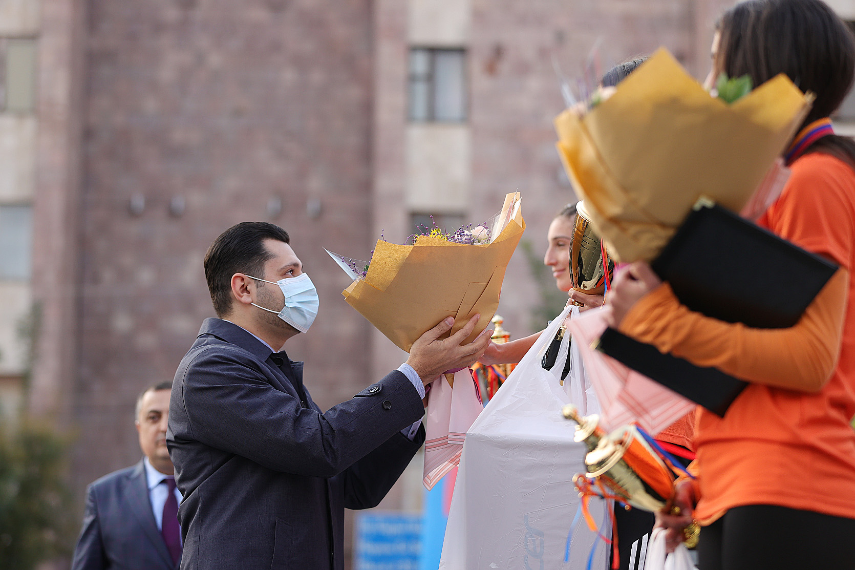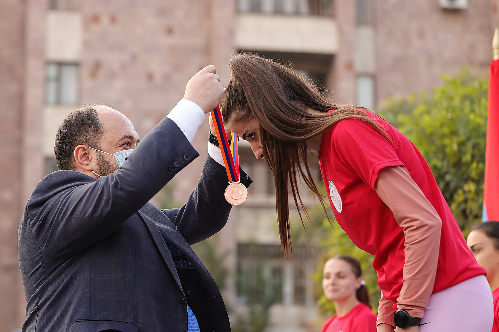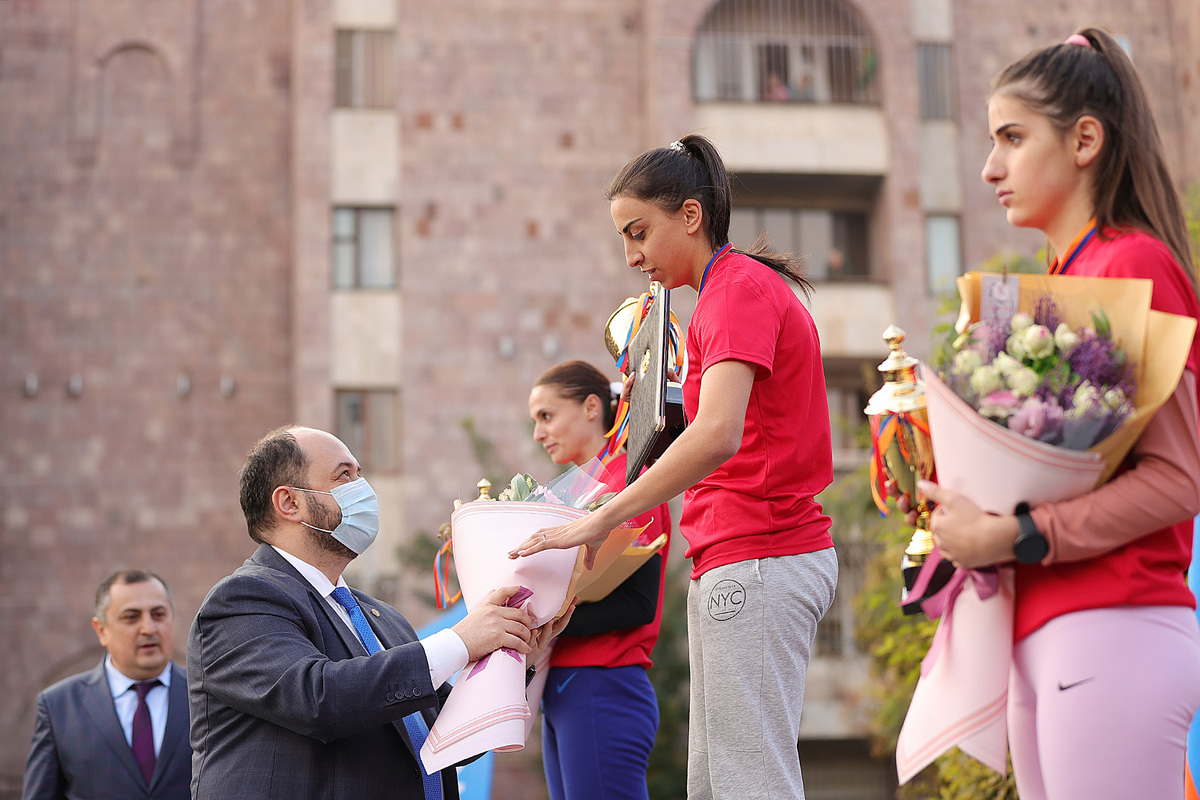 Տարբեր տարիքային խմբերում հաղթողներին մրցանակները հանձնել են վարչապետ Նիկոլ Փաշինյանը, Վարչապետի աշխատակազմի ղեկավար Արայիկ Հարությունյանը, Կրթության, գիտության, մշակույթի և սպորտի նախարար Վահրամ Դումանյանը, Առողջապահության նախարար Անահիտ Ավանեսյանը, Արմավիրի մարզպետ Համբարձում Մաթևոսյանը և Էջմիածնի քաղաքապետ Դիանա Գասպարյանը: Վարչապետը պարգևներ է հանձնել նաև կանանց և տղամարդկանց մրցավազքին մասնակցած ամենատարեց վազորդներին՝ 73-ամյա Շուշանիկ Պողոսյանին և 79-ամյա Խաչատուր Փրխոյանին: