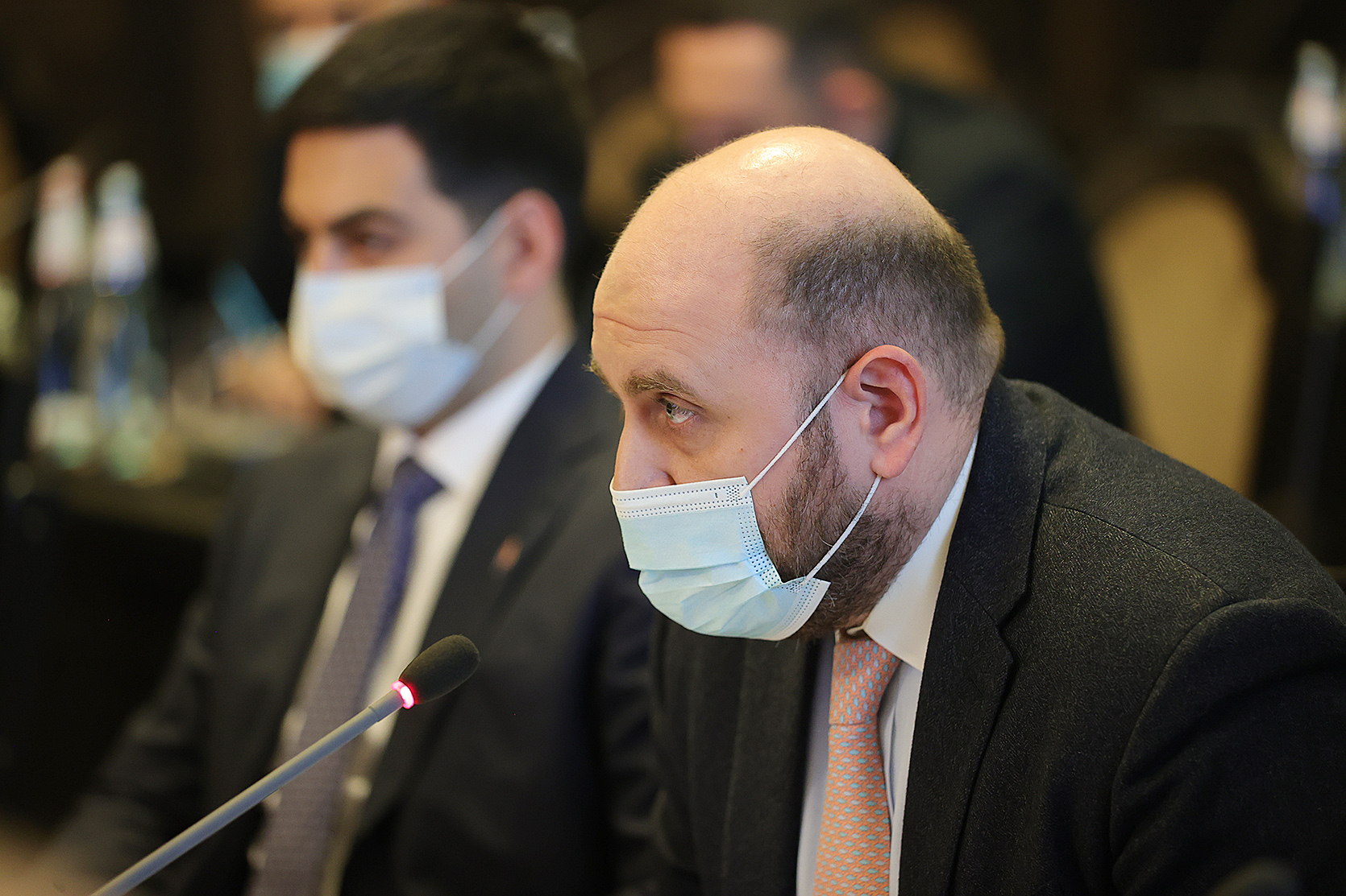 Վարչապետի խորհրդական Արտաշես Թումանյան - Շնորհակալություն, պարոն վարչապետ: Աշխատանքային խումբն իսկապես սկսել է իր գործունեությունը։ Առաջին նիստը եղել է արդեն և հանրապետության առանձին պետական գերատեսչությունների հետ և ռուսական կողմի հետ նախնական նկատառումները կան՝ ինչպես պետք է համագործակցենք։ Իսկապես երեկվա նիստը շատ գործնական էր, ռուսական կողմն իր տեսլականը ներկայացրեց։ Առաջիկա անելիքները պատկերացնում ենք, կարծում եմ՝ հաջողության դեպքում արդյունքներ կունենանք։ Շնորհակալություն։