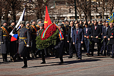 Ապրիլի 20-ի առավոտյան Վարչապետ Փաշինյանն այցելել է Մոսկվայի Ալեքսանդրի այգի, որտեղ ծաղկեսպակ է դրել Անհայտ զինվորի հուշահամալիրին և հարգանքի տուրք մատուցել: