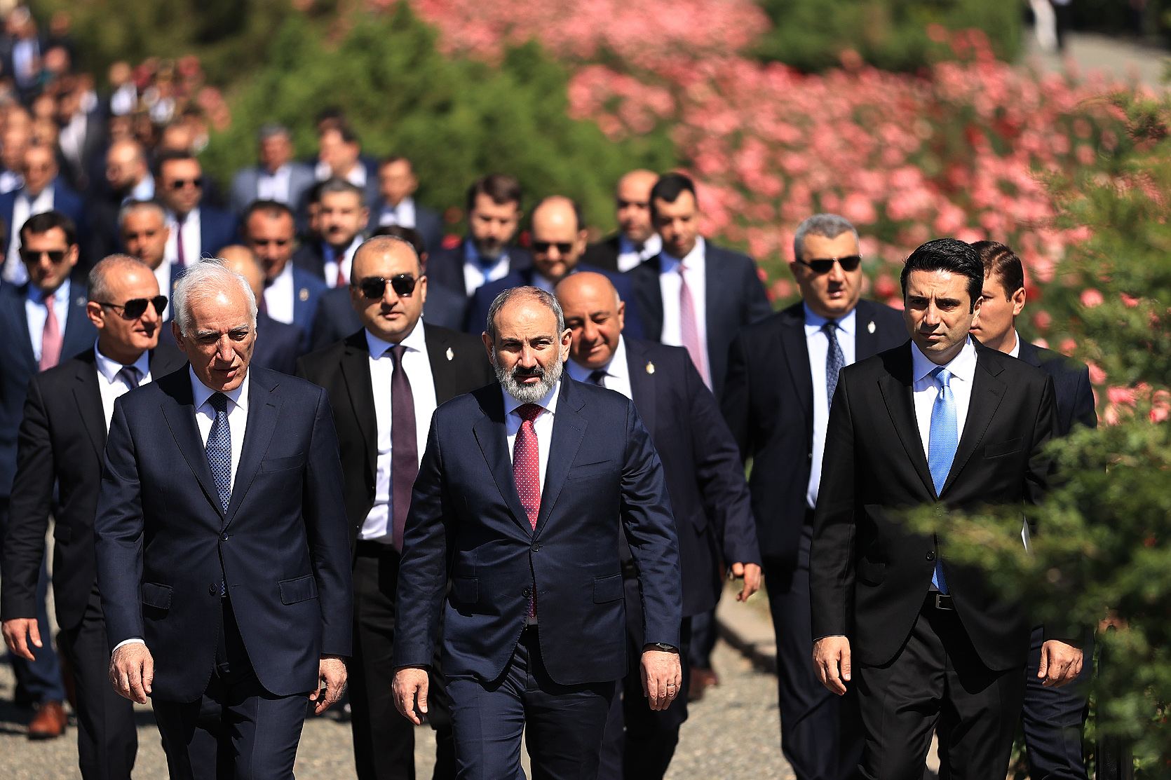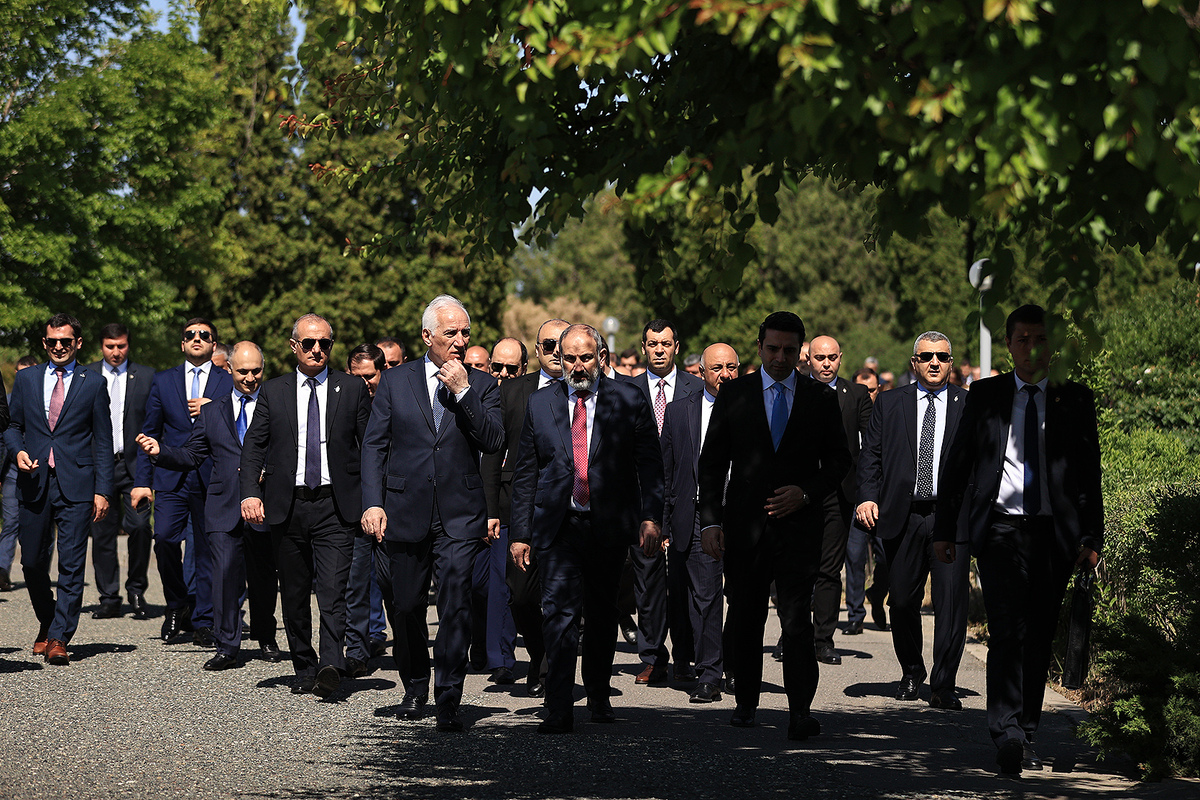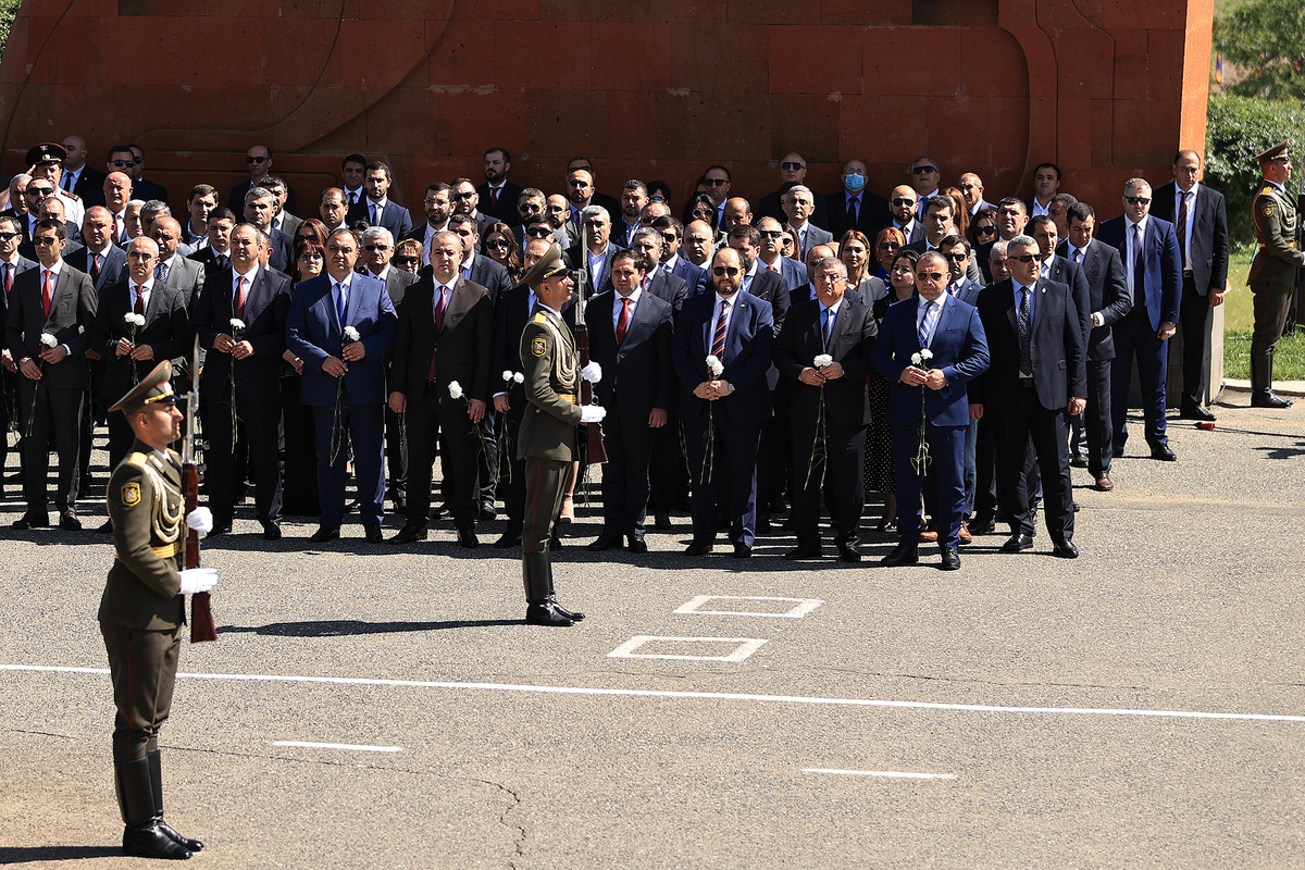 Վարչապետ Նիկոլ Փաշինյանը նախագահ Վահագն Խաչատուրյանի, Ազգային ժողովի նախագահ Ալեն Սիմոնյանի, ՀՀ բարձրագույն ղեկավարության և Հայաստանում հավատարմագրված դիվանագիտական ներկայացուցչությունների ղեկավարների հետ Հանրապետության տոնի կապակցությամբ այցելել է Սարդարապատի հերոսամարտի հուշահամալիր: