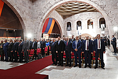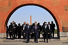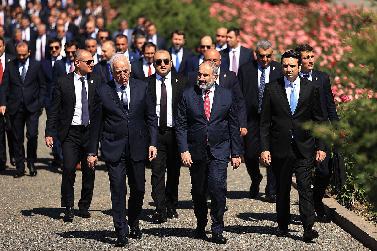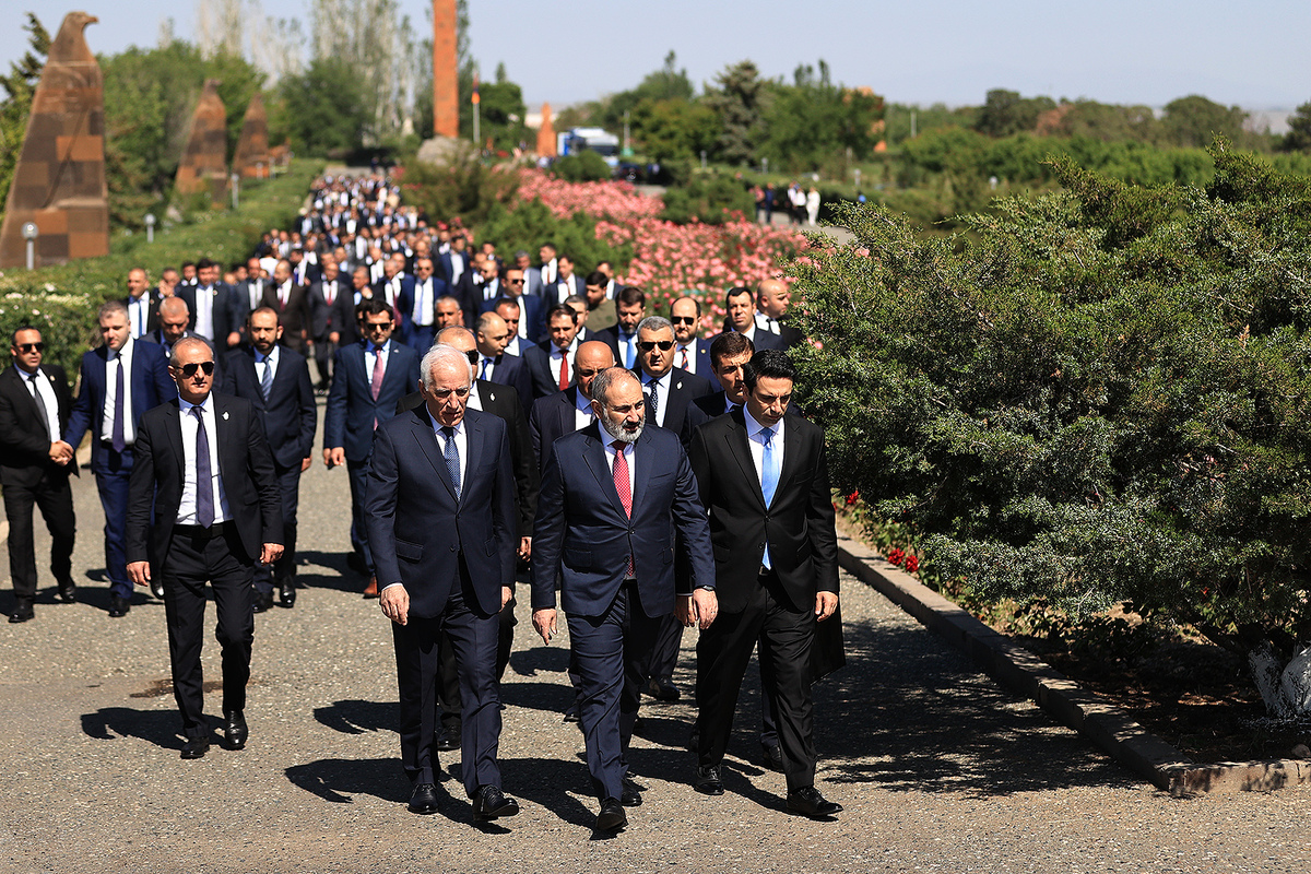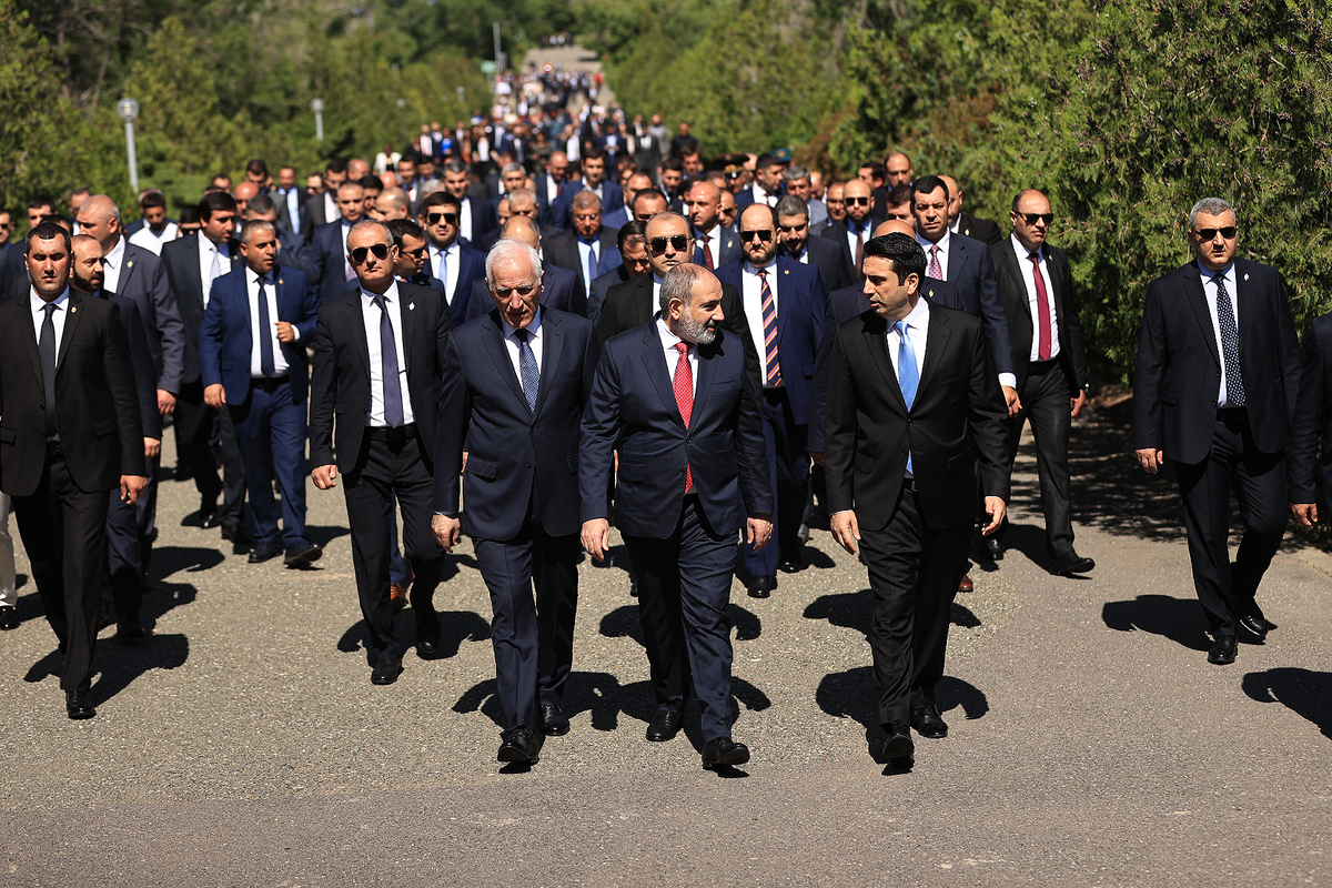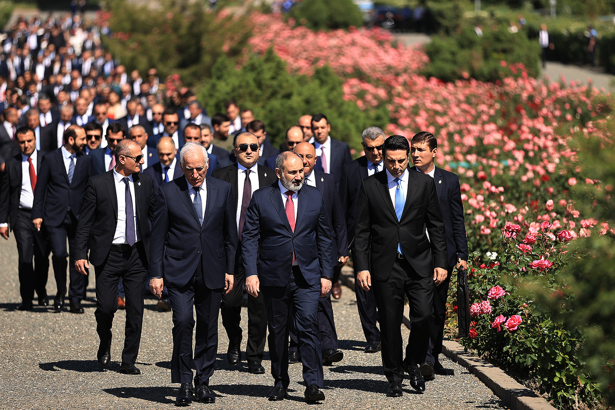 Վարչապետ Նիկոլ Փաշինյանը նախագահ Վահագն Խաչատուրյանի, Ազգային ժողովի նախագահ Ալեն Սիմոնյանի, ՀՀ բարձրագույն ղեկավարության և Հայաստանում հավատարմագրված դիվանագիտական ներկայացուցչությունների ղեկավարների հետ Հանրապետության տոնի կապակցությամբ այցելել է Սարդարապատի հերոսամարտի հուշահամալիր: