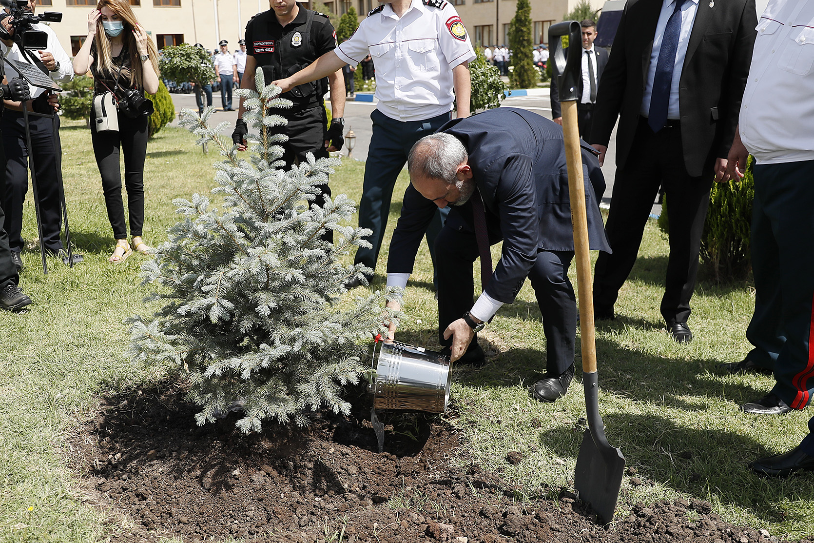 Ոստիկանության զորքերի 30-րդ տարեդարձի կապակցությամբ վարչապետ Փաշինյանը տնկել է եղևնի, որից հետո ներկաները մեկ րոպե լռությամբ հարգանքի տուրք են մատուցել հանուն Հայրենիքի զոհված Ոստիկանության զորքերի բոլոր ներկայացուցիչների: