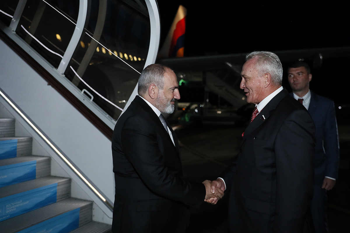 Վարչապետ Նիկոլ Փաշինյանն աշխատանքային այցով ժամանել է Ռուսաստանի Դաշնություն՝ Վլադիվոստոկ: Կառավարության ղեկավարի գլխավորած պատվիրակության կազմում են՝ փոխվարչապետ Մհեր Գրիգորյանը, Ազգային ժողովի նախագահի տեղակալներ՝ Հակոբ Արշակյանը, Ռուբեն Ռուբինյանը, Արտաքին գործերի նախարարի տեղակալ Մնացական Սաֆարյանը և պաշտոնատար այլ անձինք: