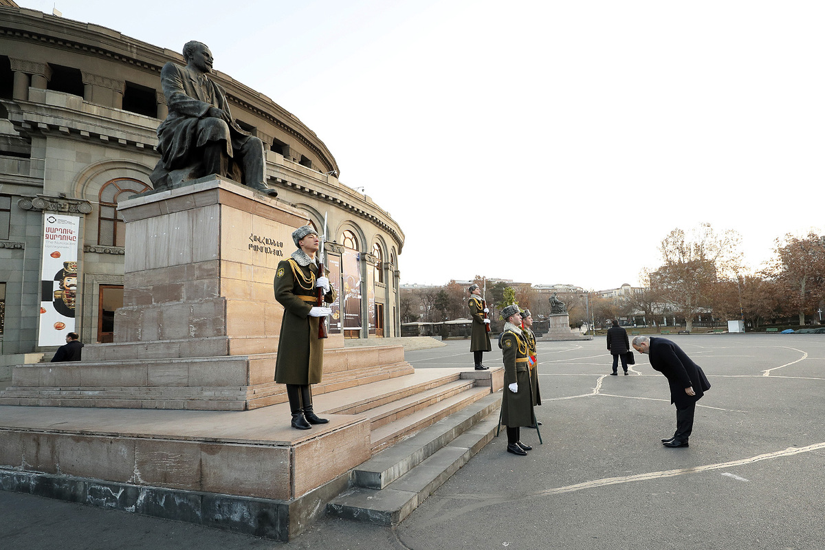 Վարչապետ Նիկոլ Փաշինյանն այցելել է Օղակաձև զբոսայգի և Ազատության հրապարակ՝ հարգանքի տուրք մատուցել մեծանուն բանաստեղծներ Եղիշե Չարենցի և Հովհաննես Թումանյանի հիշատակին ու ծաղիկներ խոնարհել նրանց հուշարձաններին։